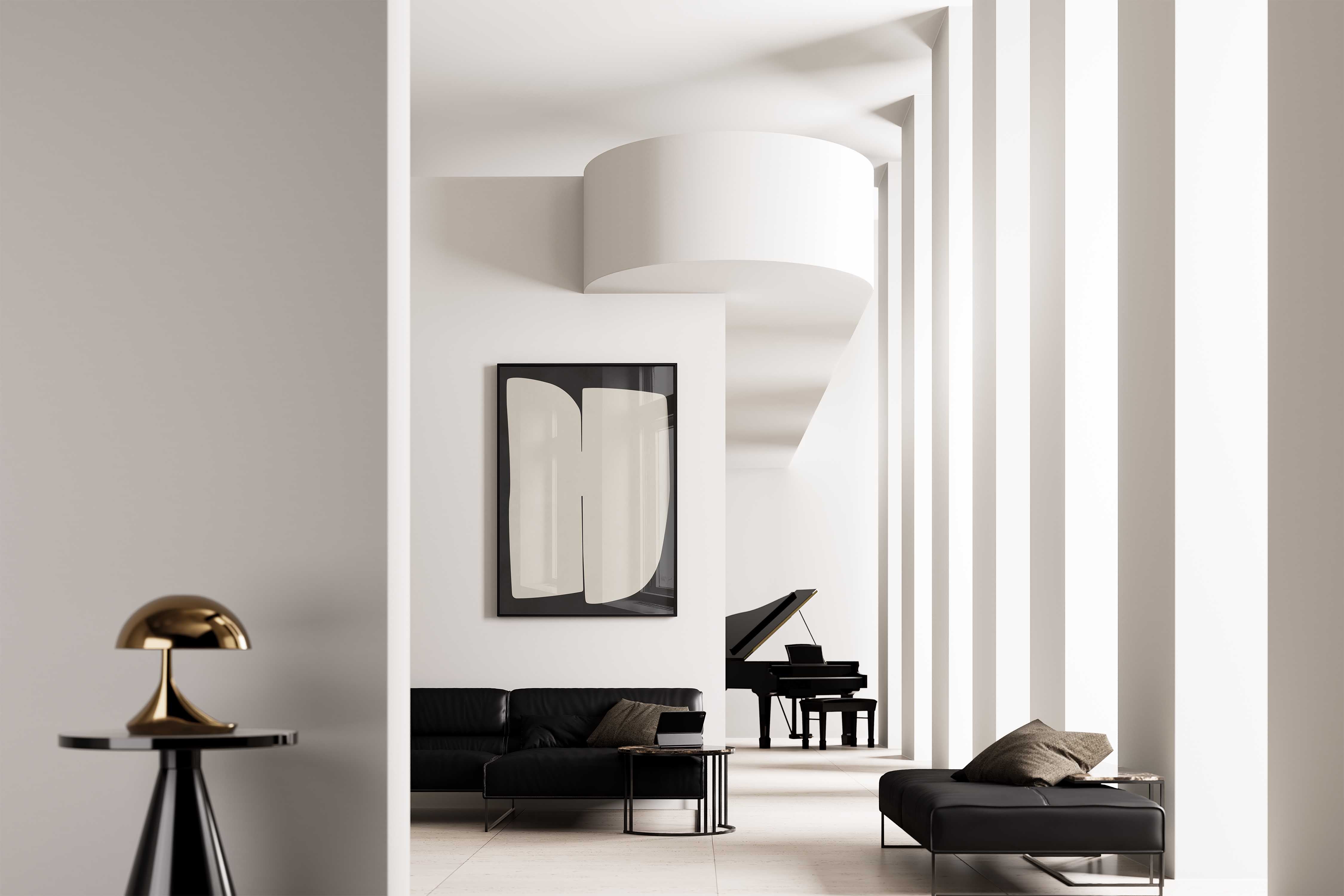 Elevate any space with the Lacie Abstract Poster. Featuring a striking black and beige geometric design, this poster adds a touch of timeless sophistication to any interior. Its sleek and graceful aesthetic is sure to make a lasting impression.