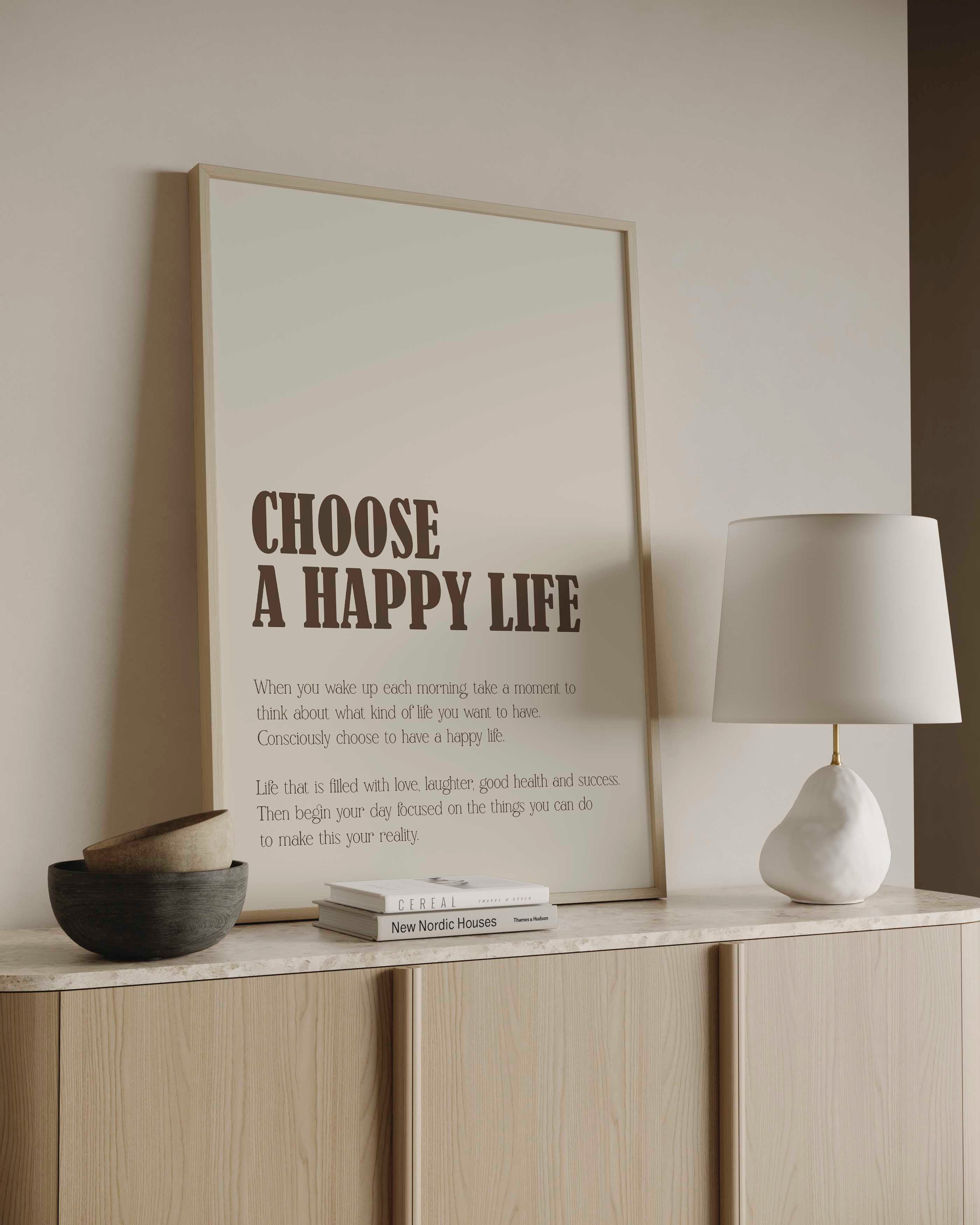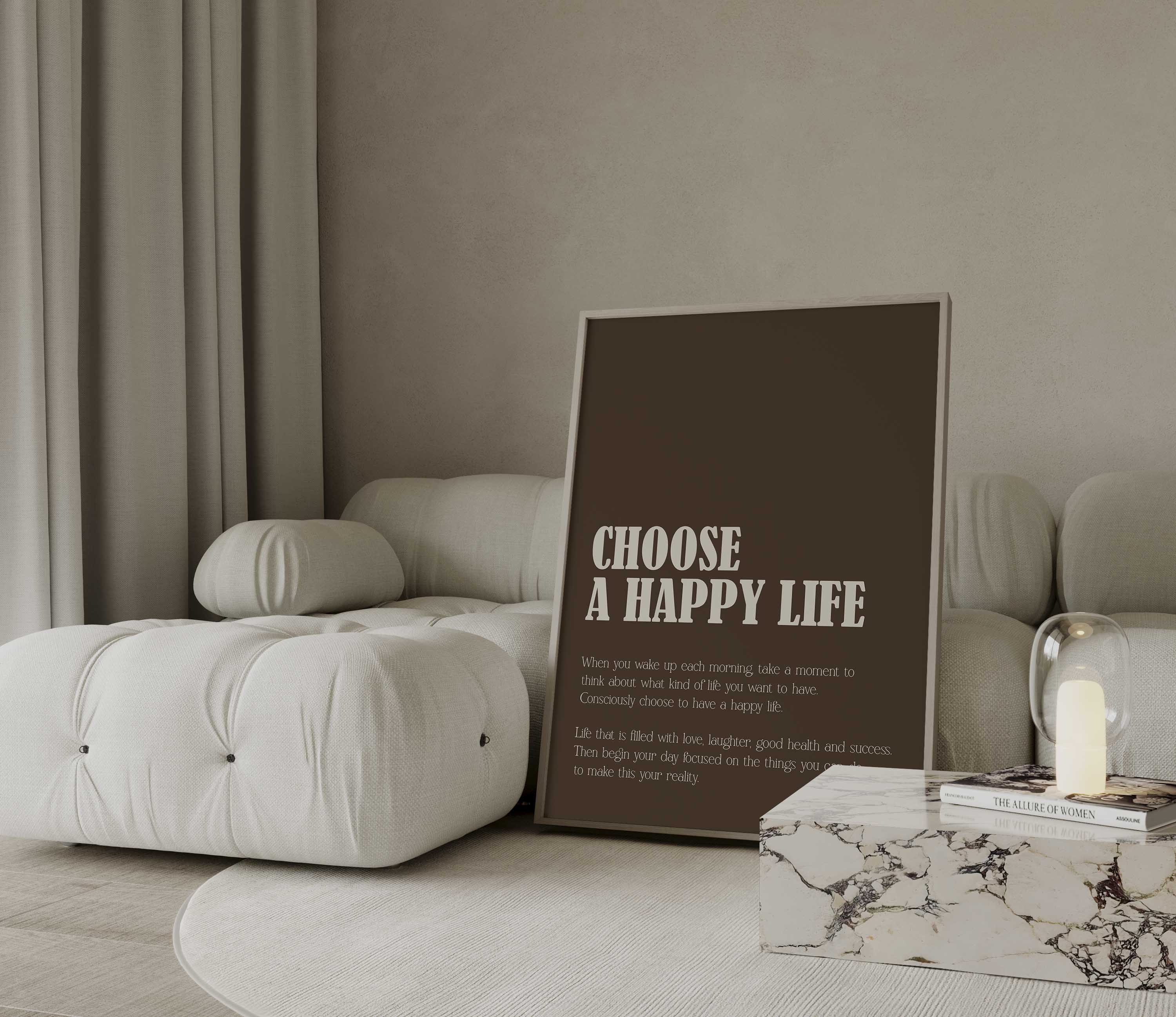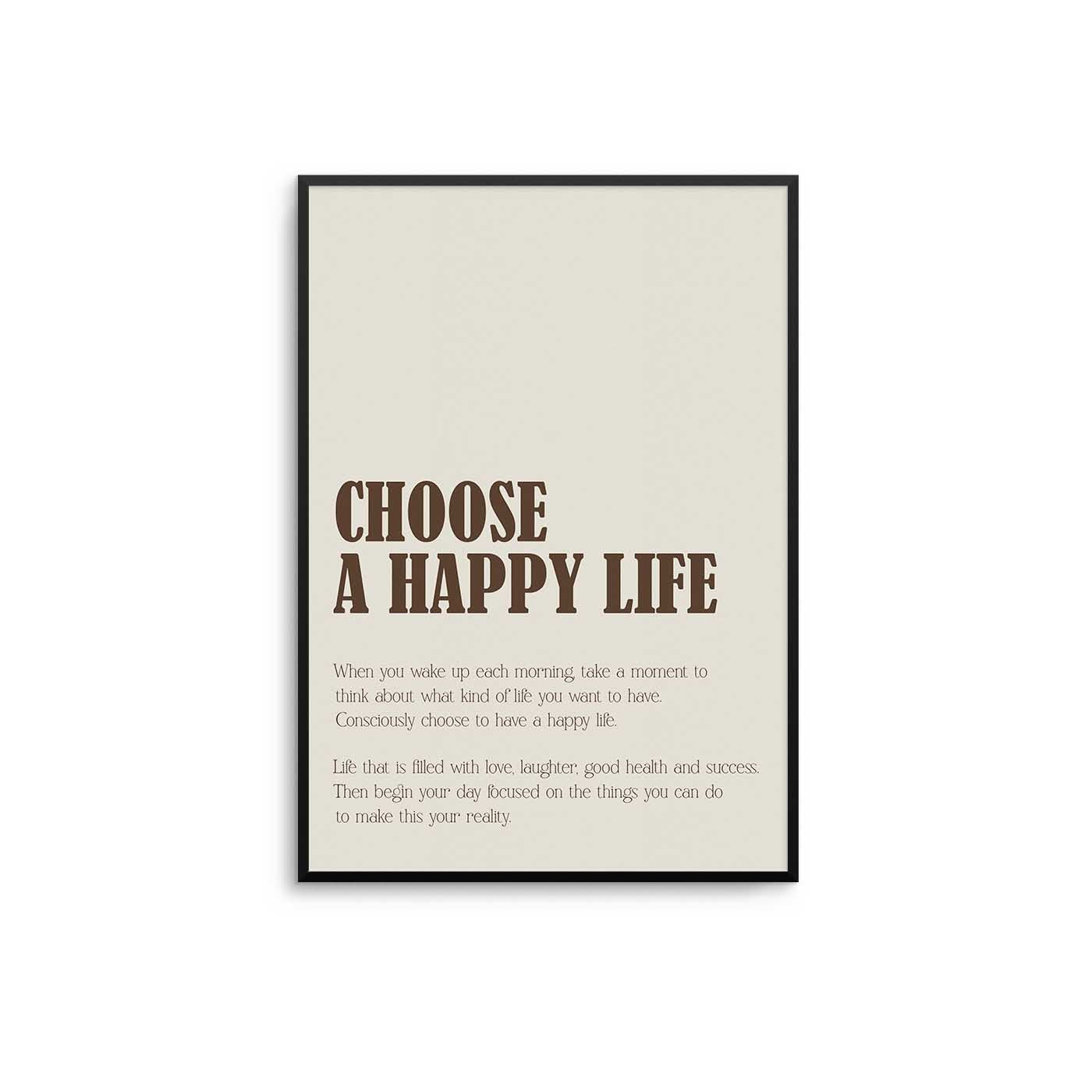 Choose A Happy Life Brown Print