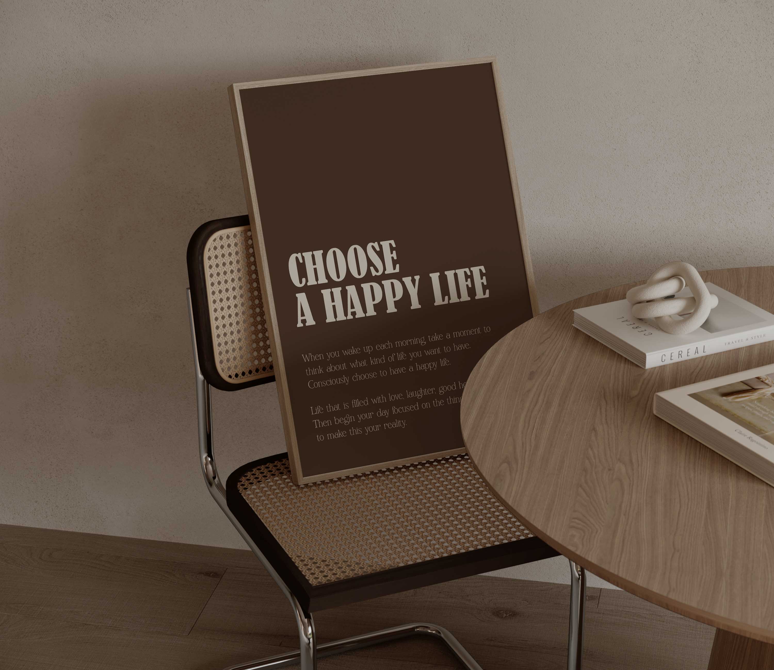 Embrace intentional living with this sophisticated motivational print. Available in two elegant colourways—rich brown typography on warm beige, or inverted for striking contrast—this piece serves as a refined visual affirmation in any space. A thoughtful reminder to prioritise joy and authenticity, it combines aesthetic appeal with meaningful messaging to elevate your daily perspective and home décor.