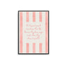 This motivational poster displays the phrase, "the happiest of people romanticise their life because they know magic exists where they choose to find it." It’s an ideal piece to display at home, highlighting the power of perspective. The design features light red text and stripes on a soft beige backdrop.