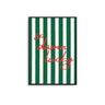 This artwork showcases the phrase "so damn lucky" in bold red letters set against a background of beige and green stripes. It brings a vibrant and sophisticated accent to any interior space.