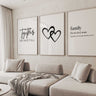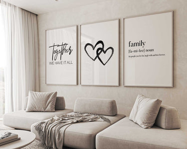 'Together We Have It All, Black Hearts & Family Noun' Black on White trio set of prints.