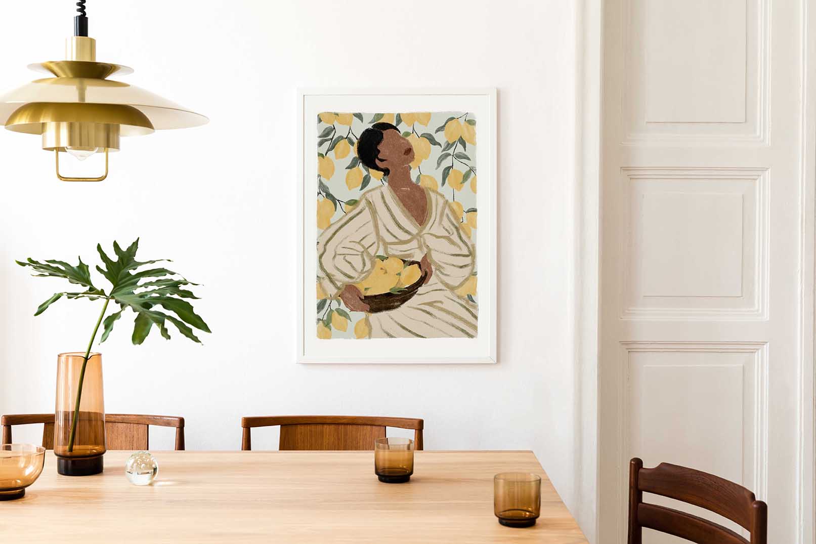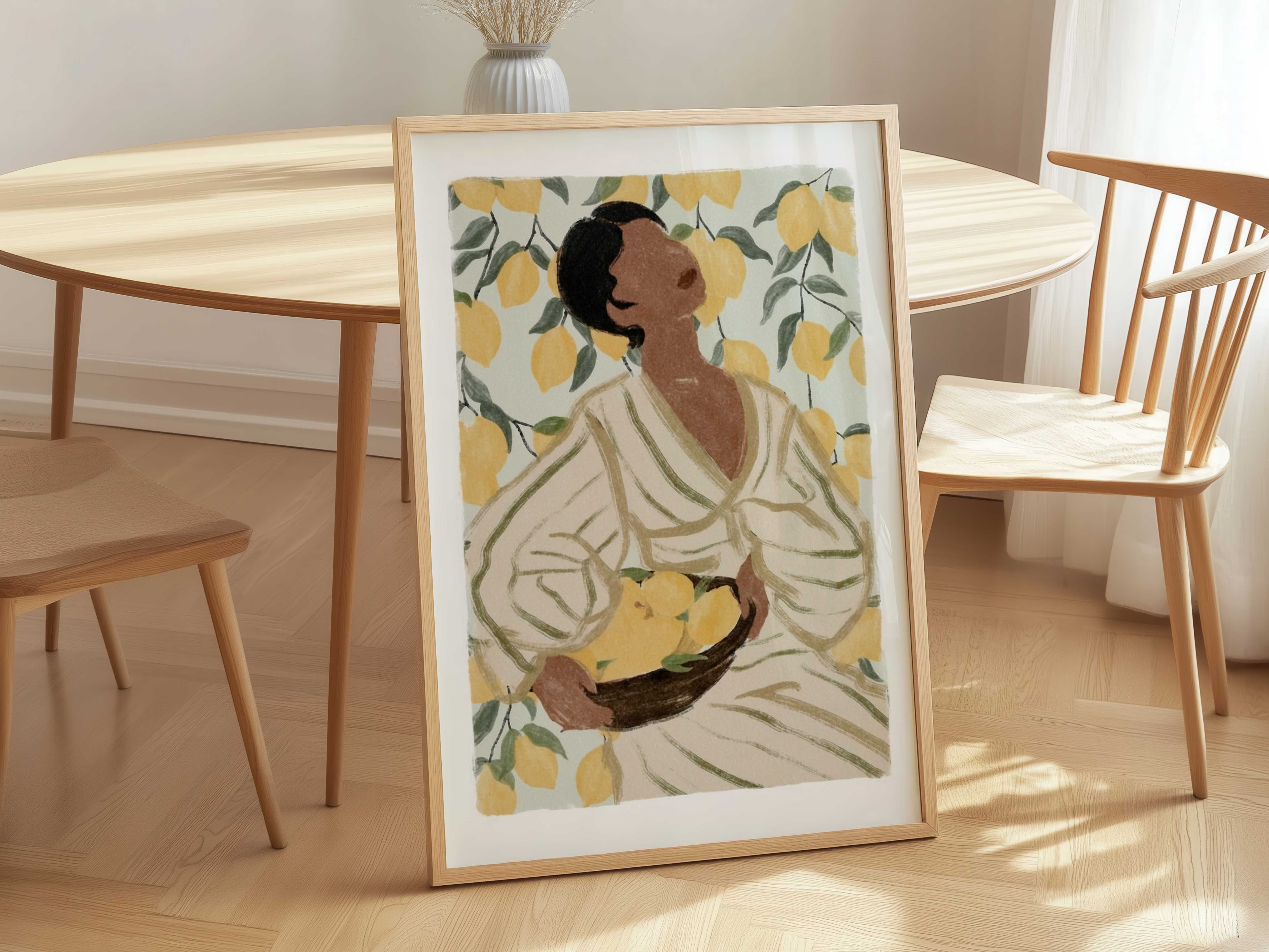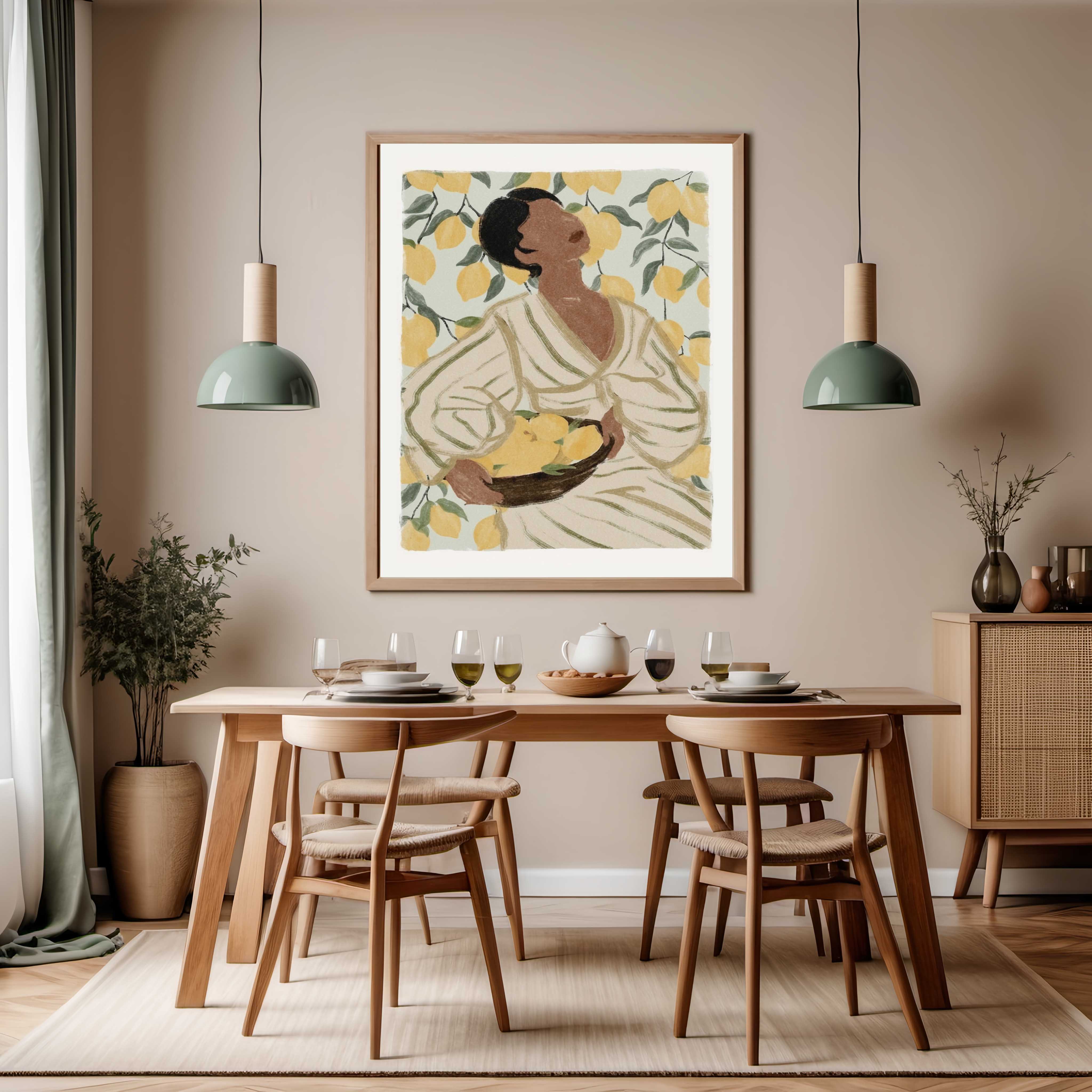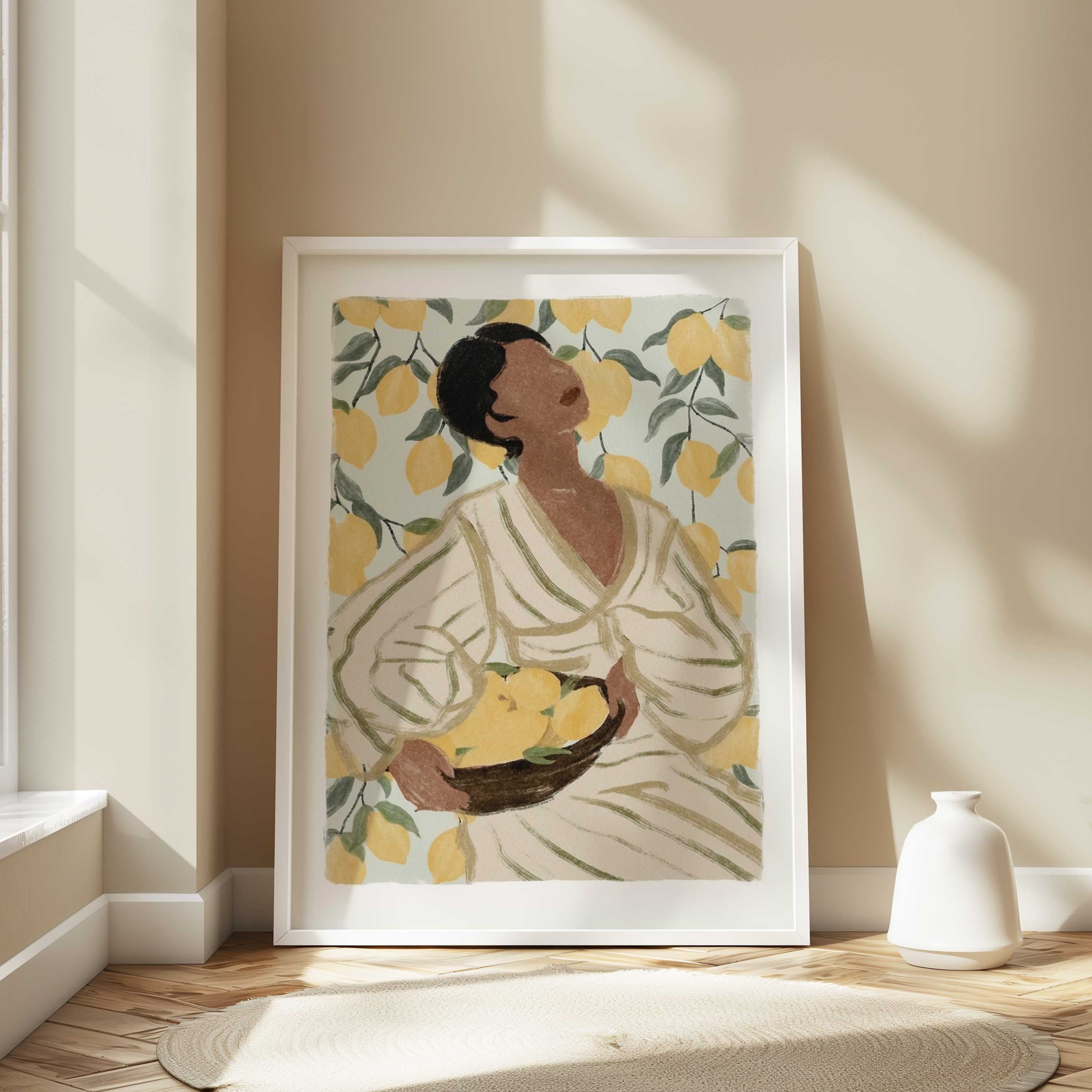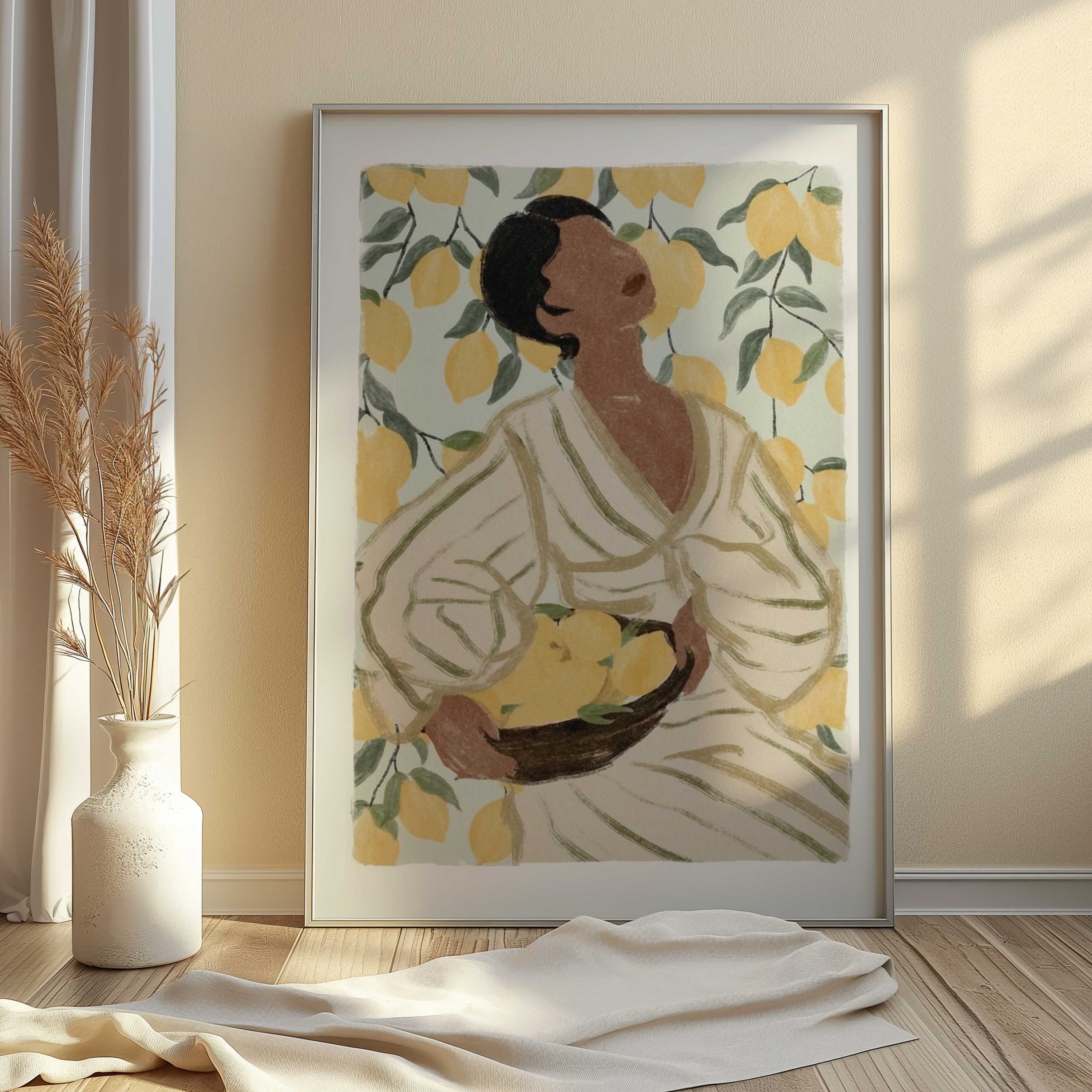 Warm, expressive, and full of Mediterranean charm — the Citrus Muse Print captures a quiet moment of calm among sunlit lemon branches. With its soft textures, earthy tones, and painterly composition, this piece brings warmth and character to any interior.