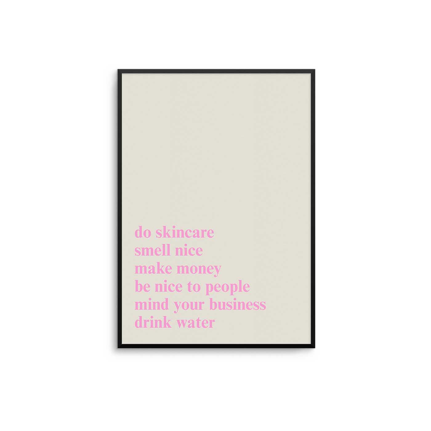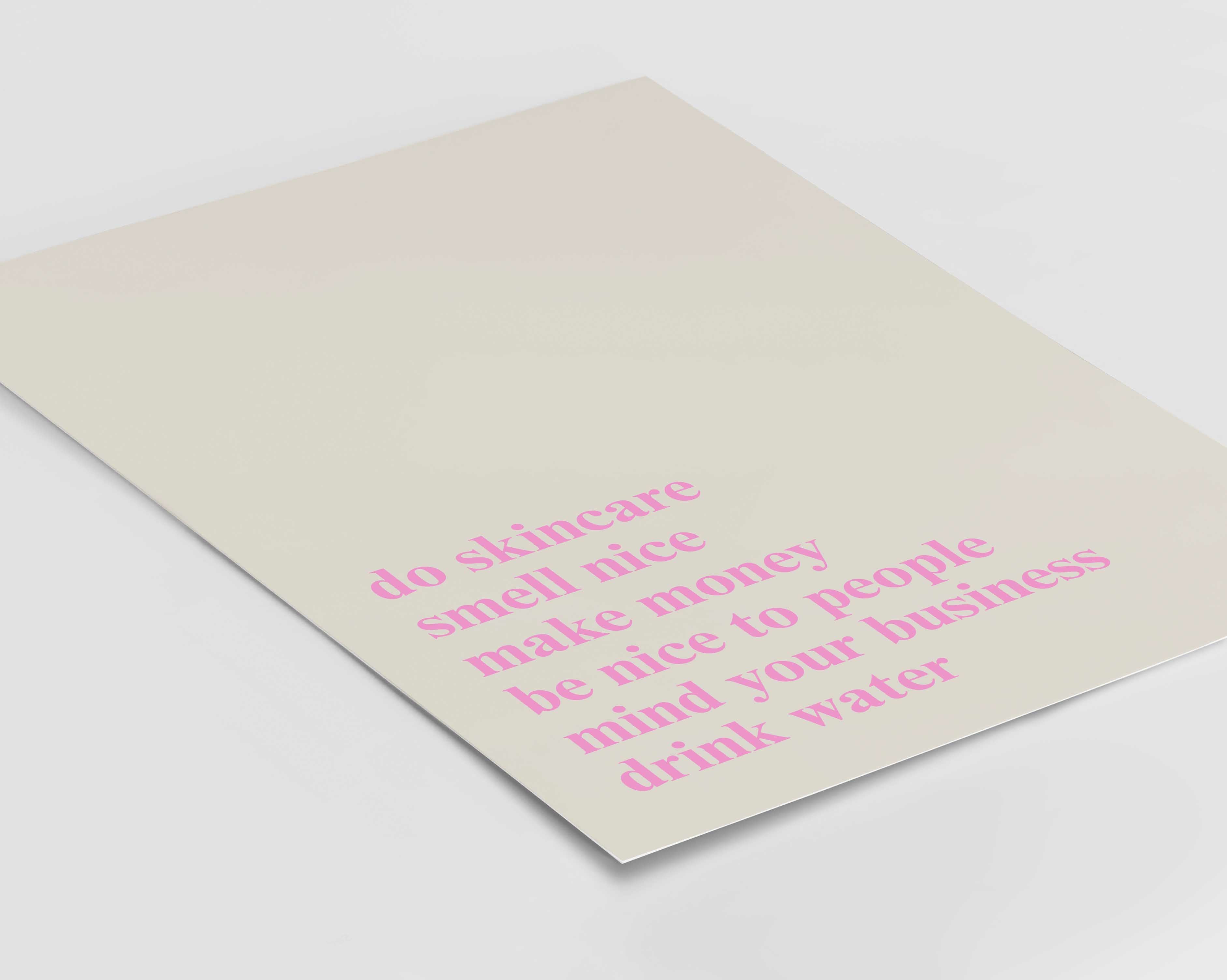 Maintain your wellbeing effortlessly with this Self Care Checklist Poster. Featuring a beige backdrop and pink lettering, the uplifting affirmations serve as a motivational guide to support your self-care routine. This elegant and straightforward poster is designed to help you prioritize both your mental and physical health every day.