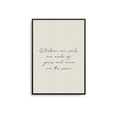 A beautifully simple typography print inspired by timeless words of love: “Whatever our souls are made of, yours and mine are the same.”