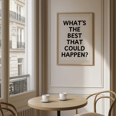 The "What's The Best That Could Happen" poster presents motivational typography aimed at fostering optimism and thoughtful reflection. It is available in a range of different colours.