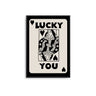 This poster showcases an artistic portrayal of a queen of hearts card, accompanied by the inspirational phrase "lucky you." The striking black illustration contrasts beautifully with the subdued beige backdrop and is elegantly encased by a bold black border, making it an ideal enhancement for any room in your home.