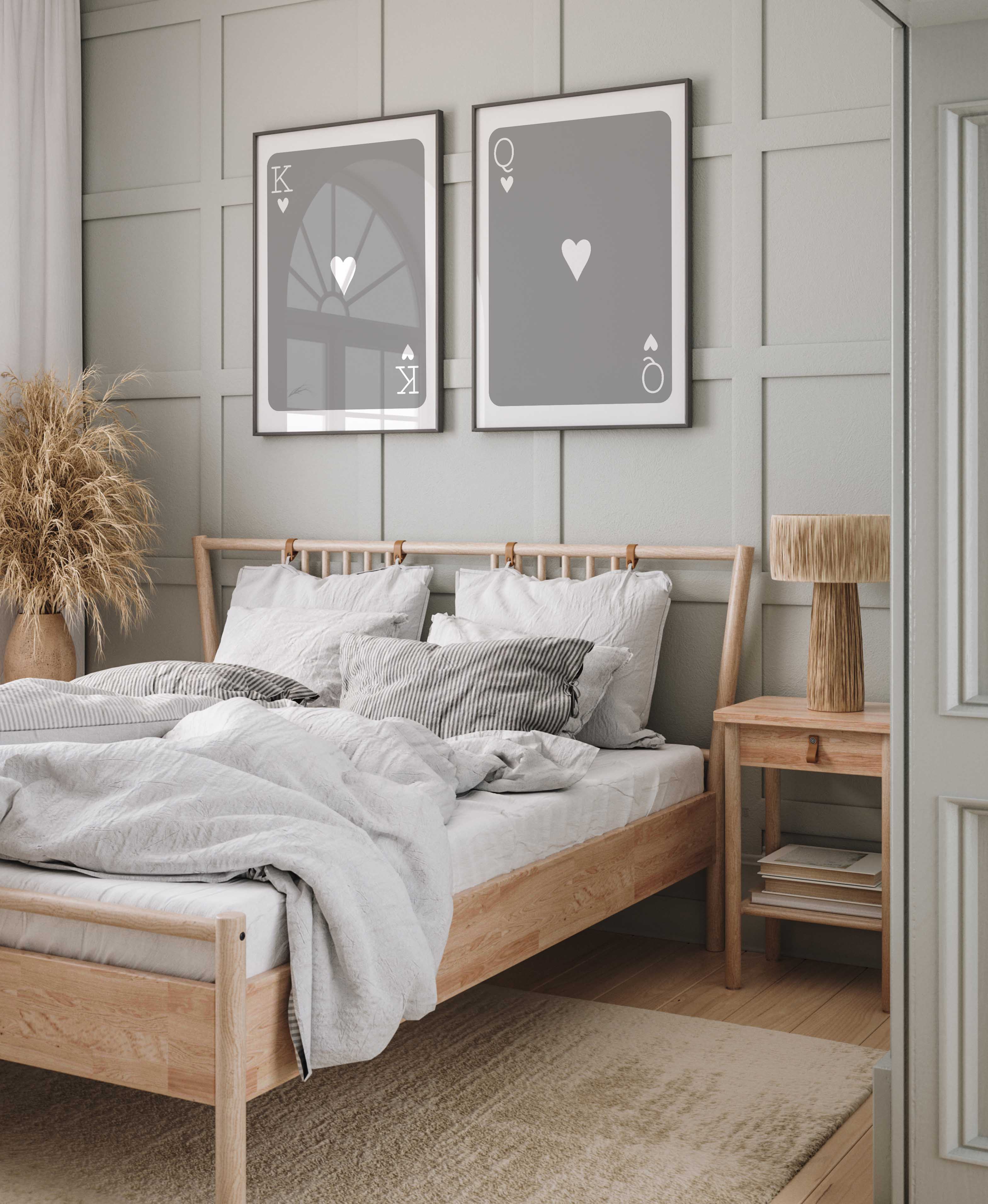 This minimalist playing card print set brings balance, symmetry, and subtle character to bedrooms and living spaces. Designed with clean lines and soft colour palettes, these pieces work beautifully above a bed, styled as a pair in a dining space, or as part of a curated gallery wall.