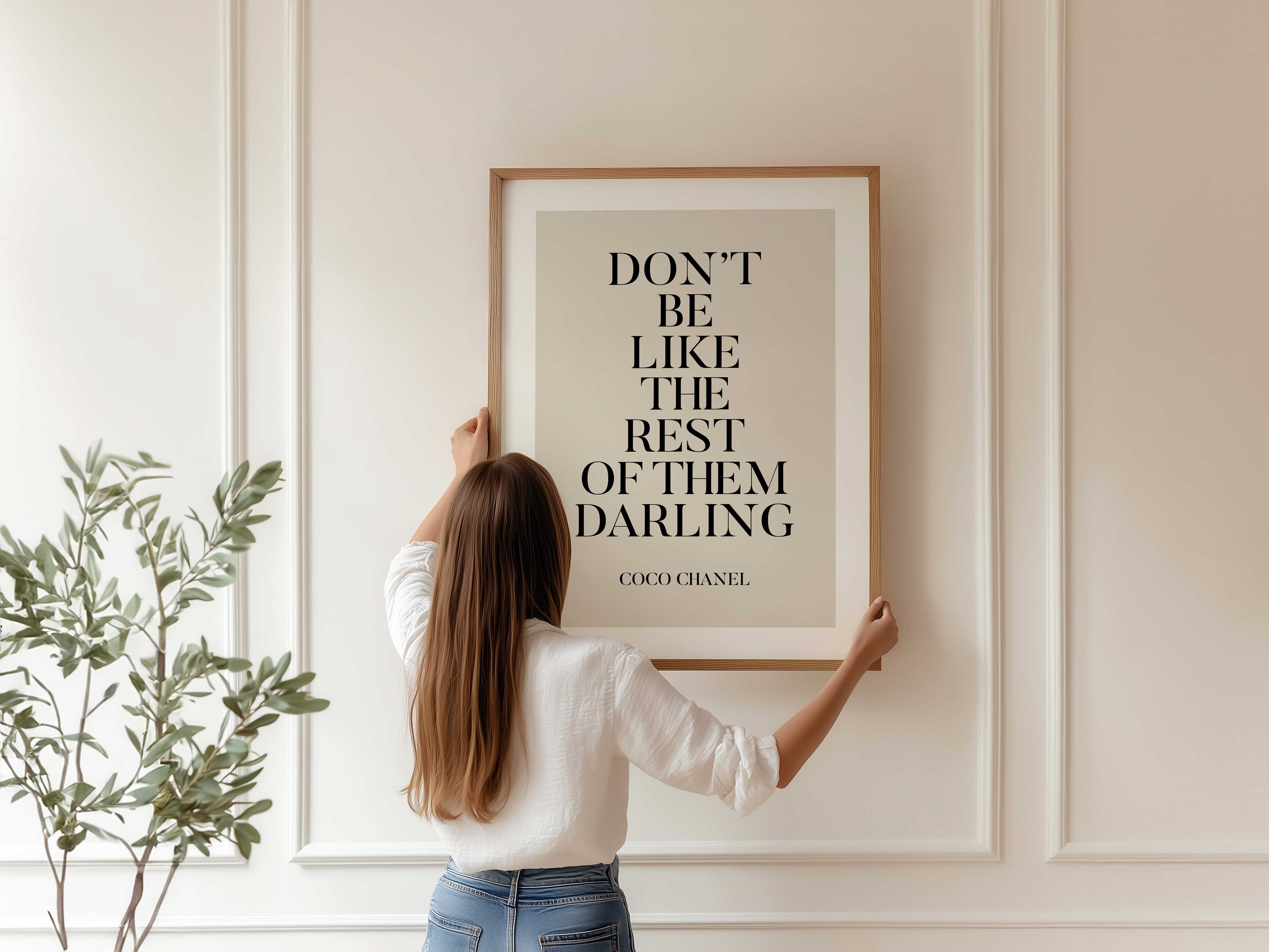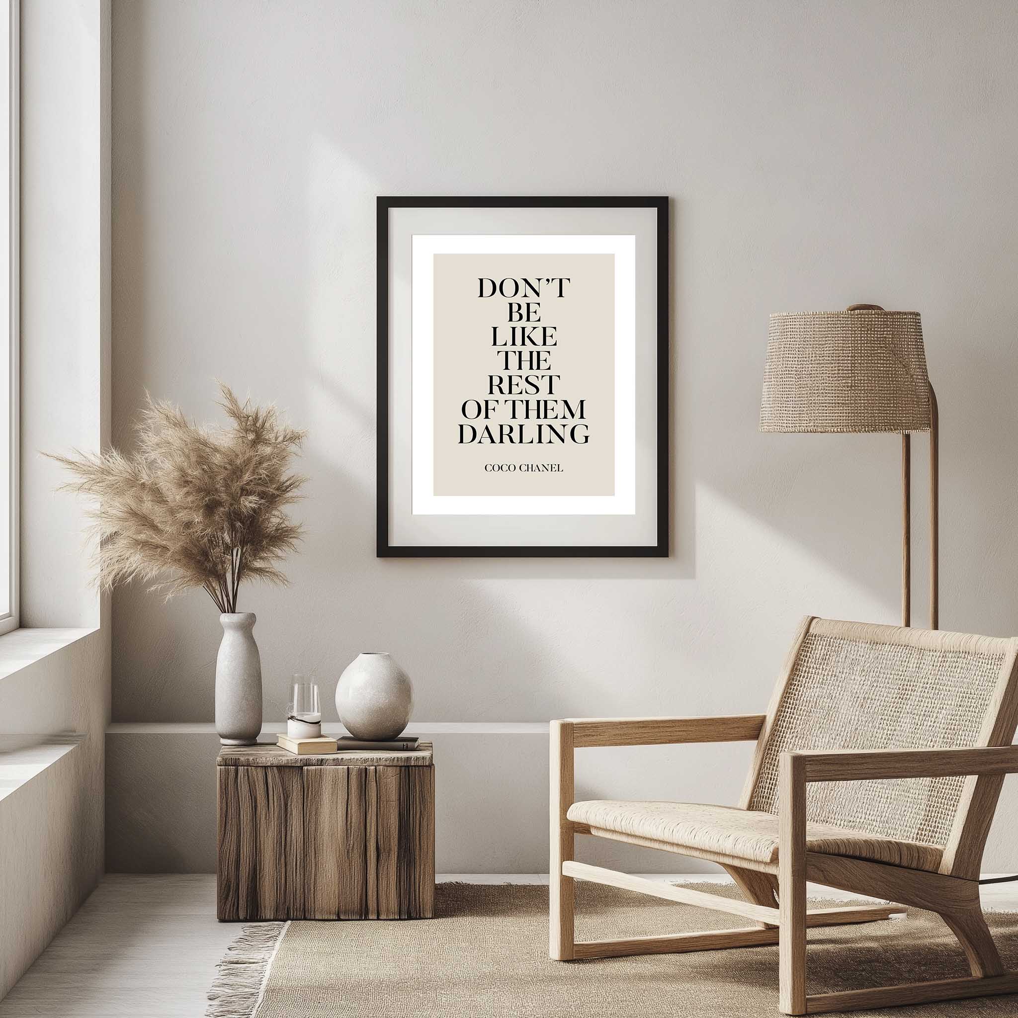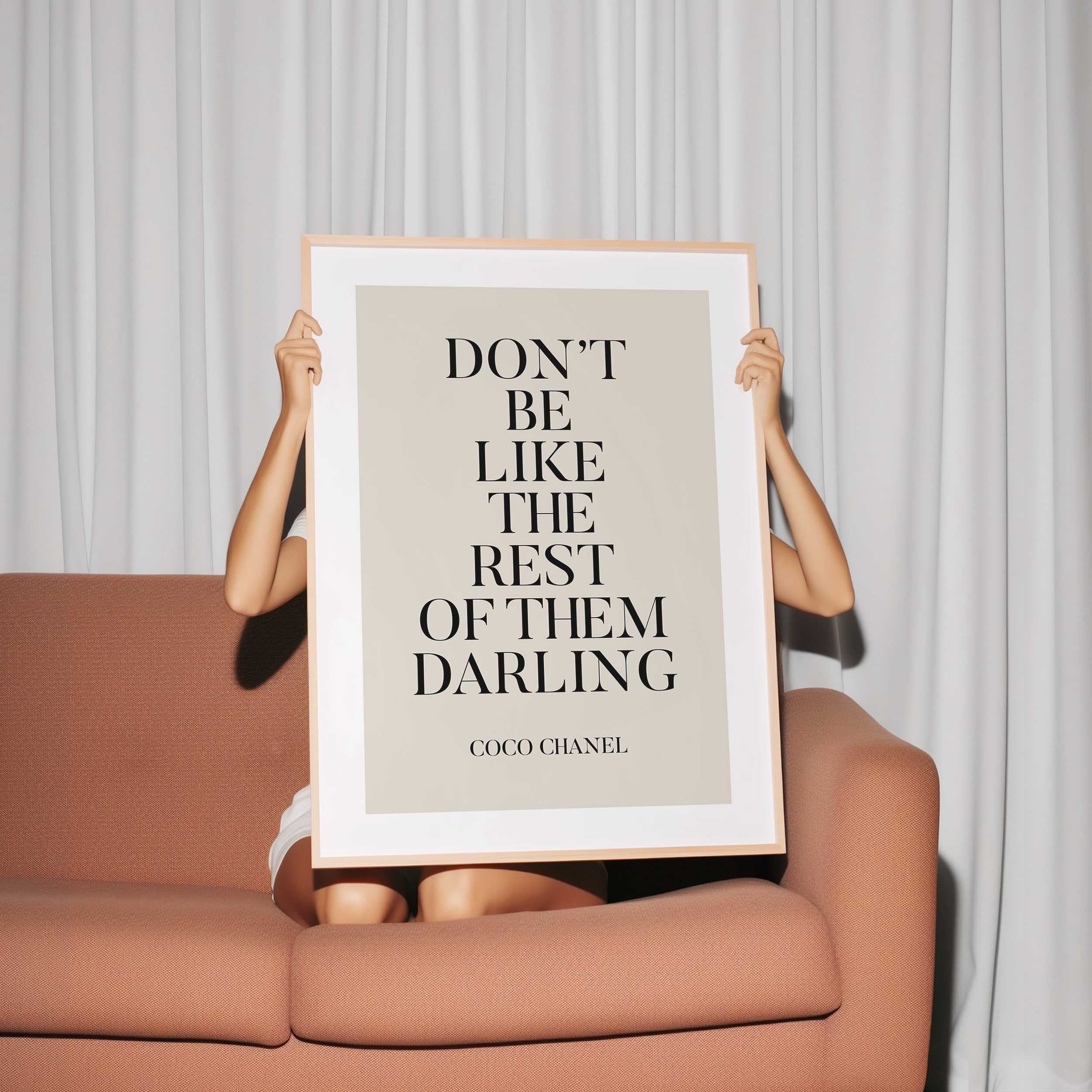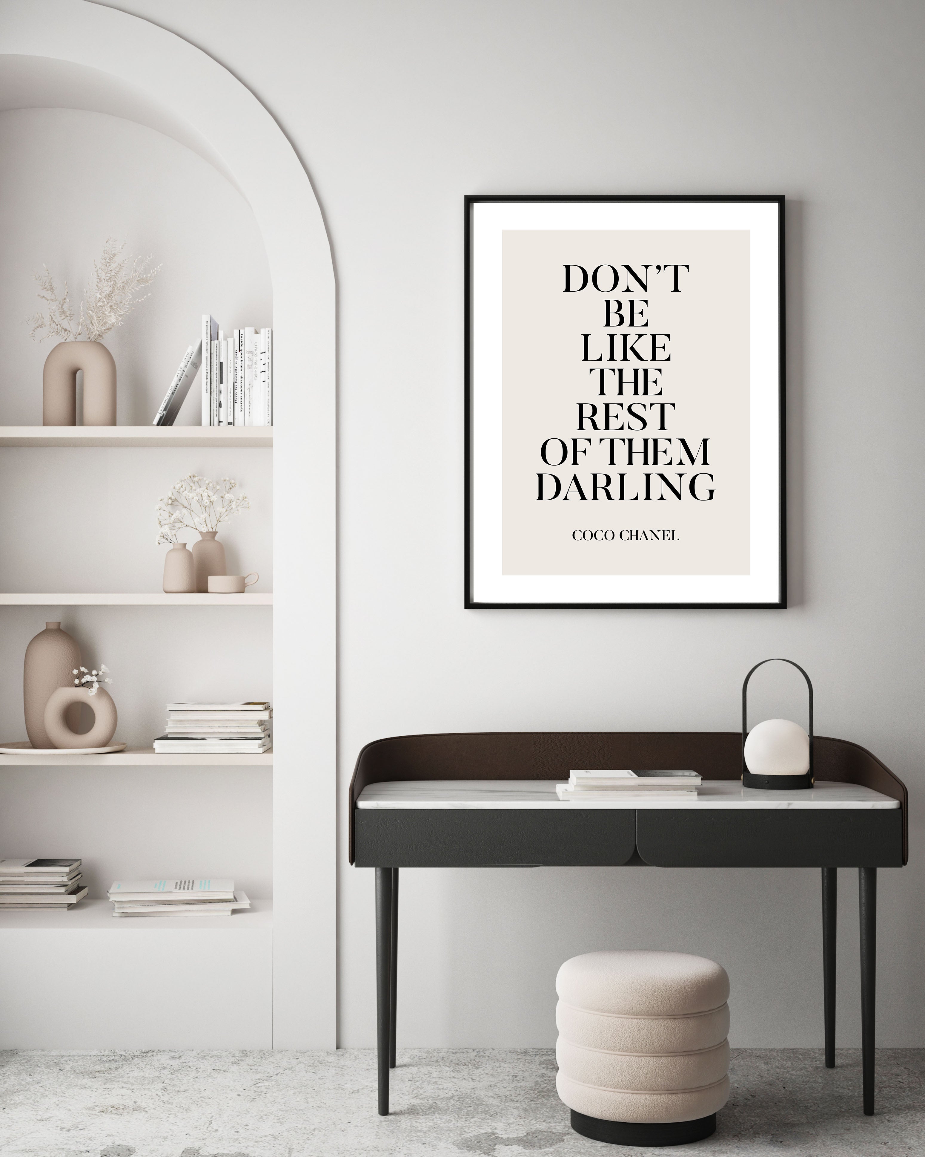 'Don't Be Like The Rest Of Them Darling ' black and beige fashion print.