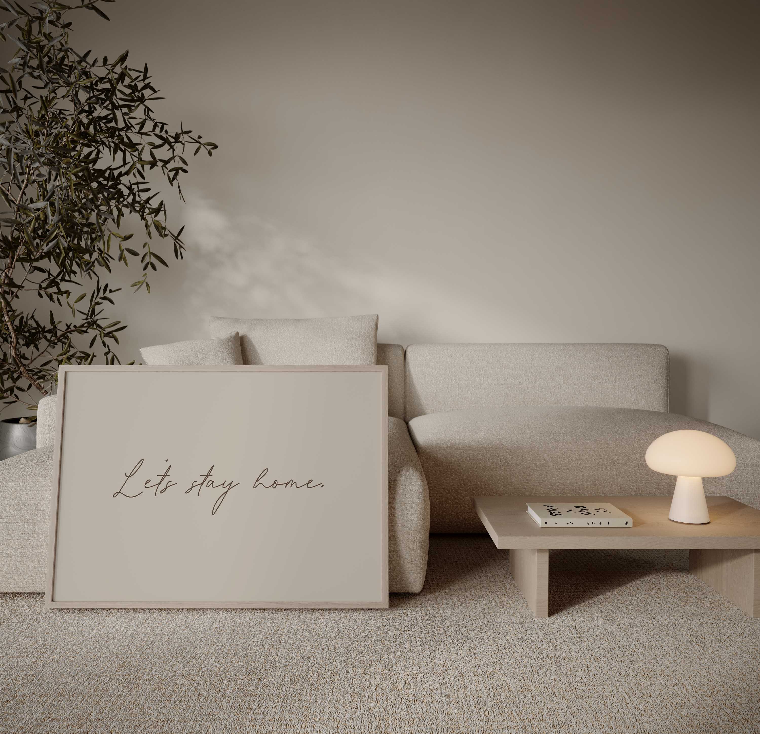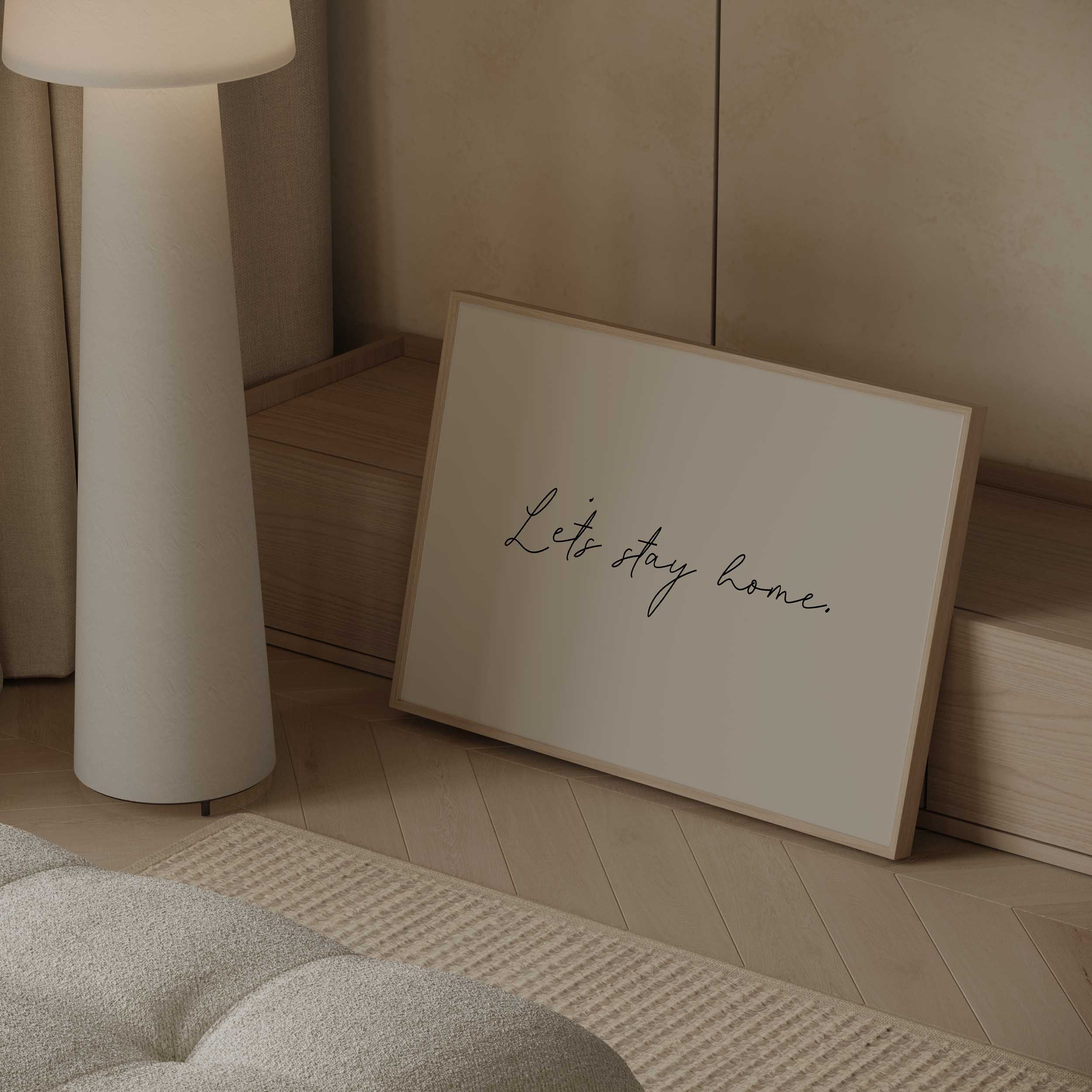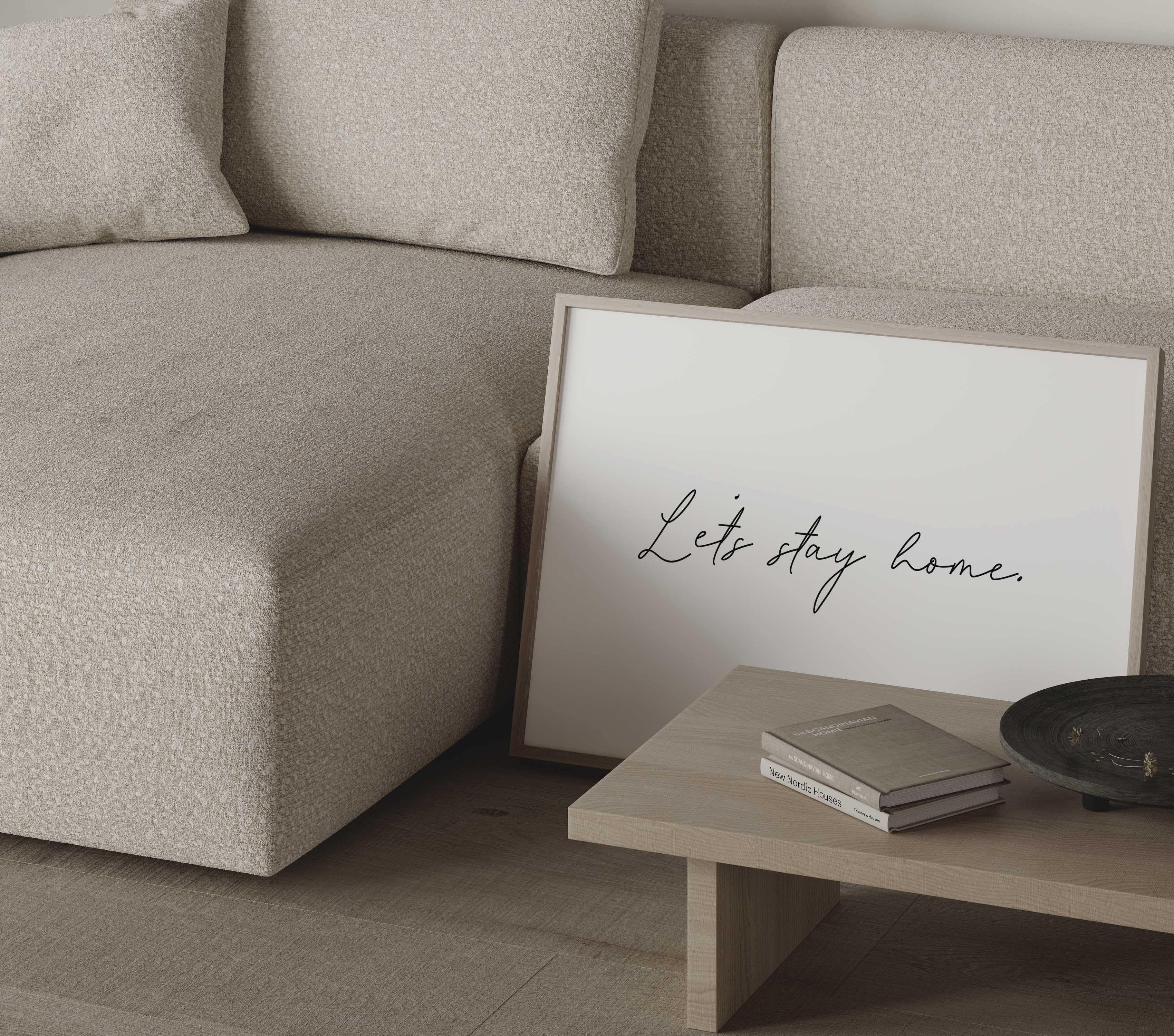 “Let’s Stay Home” is a quiet statement that suits living rooms, bedrooms and relaxed corners of the home, styled to feel natural rather than styled-for-show.
