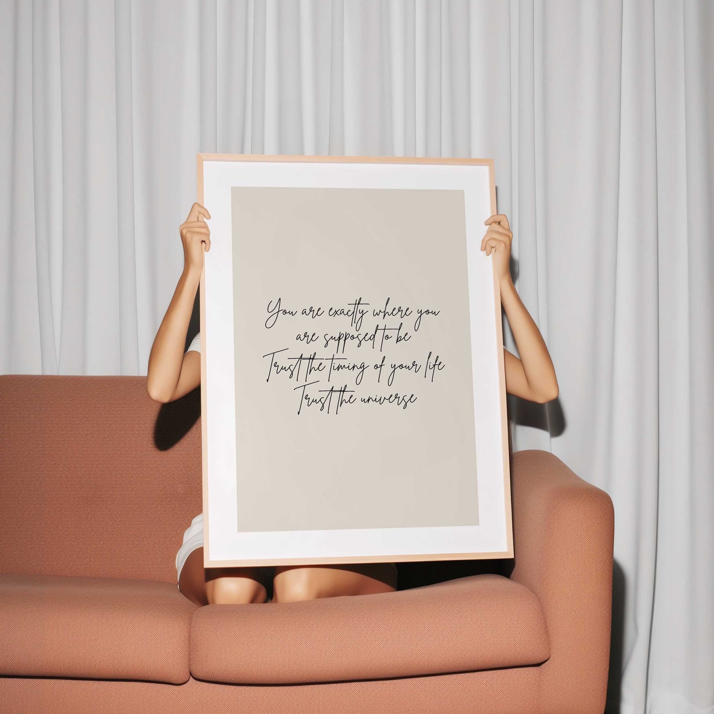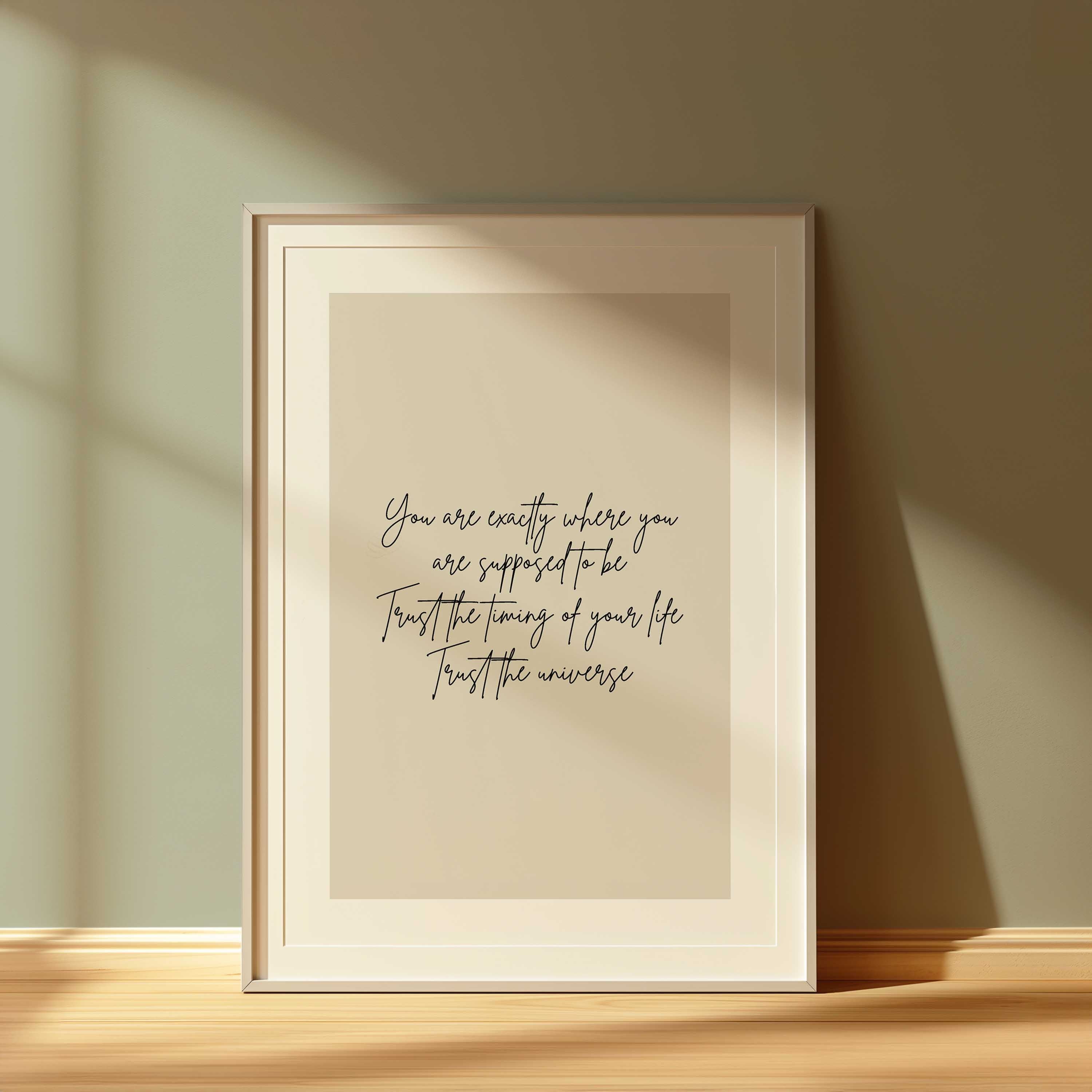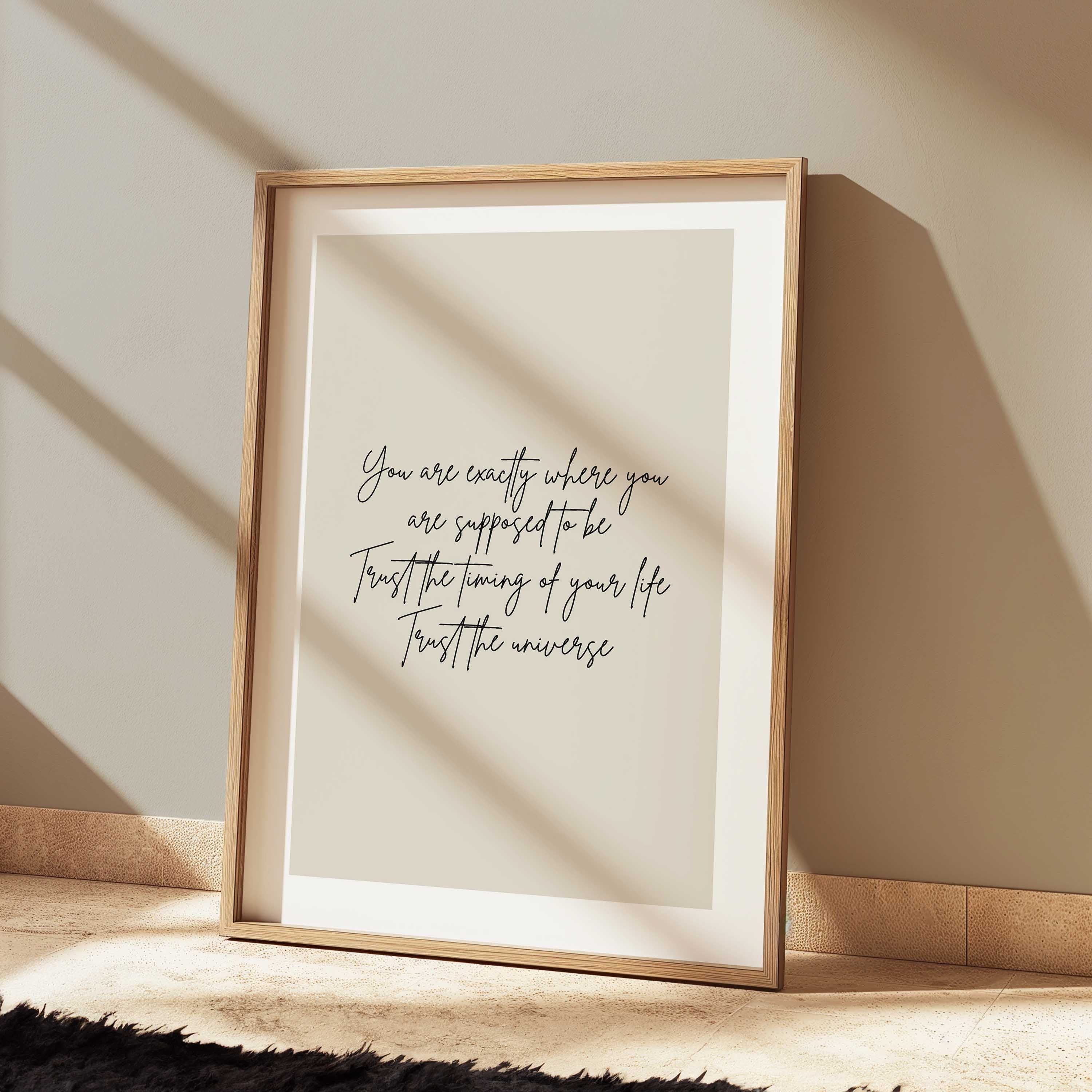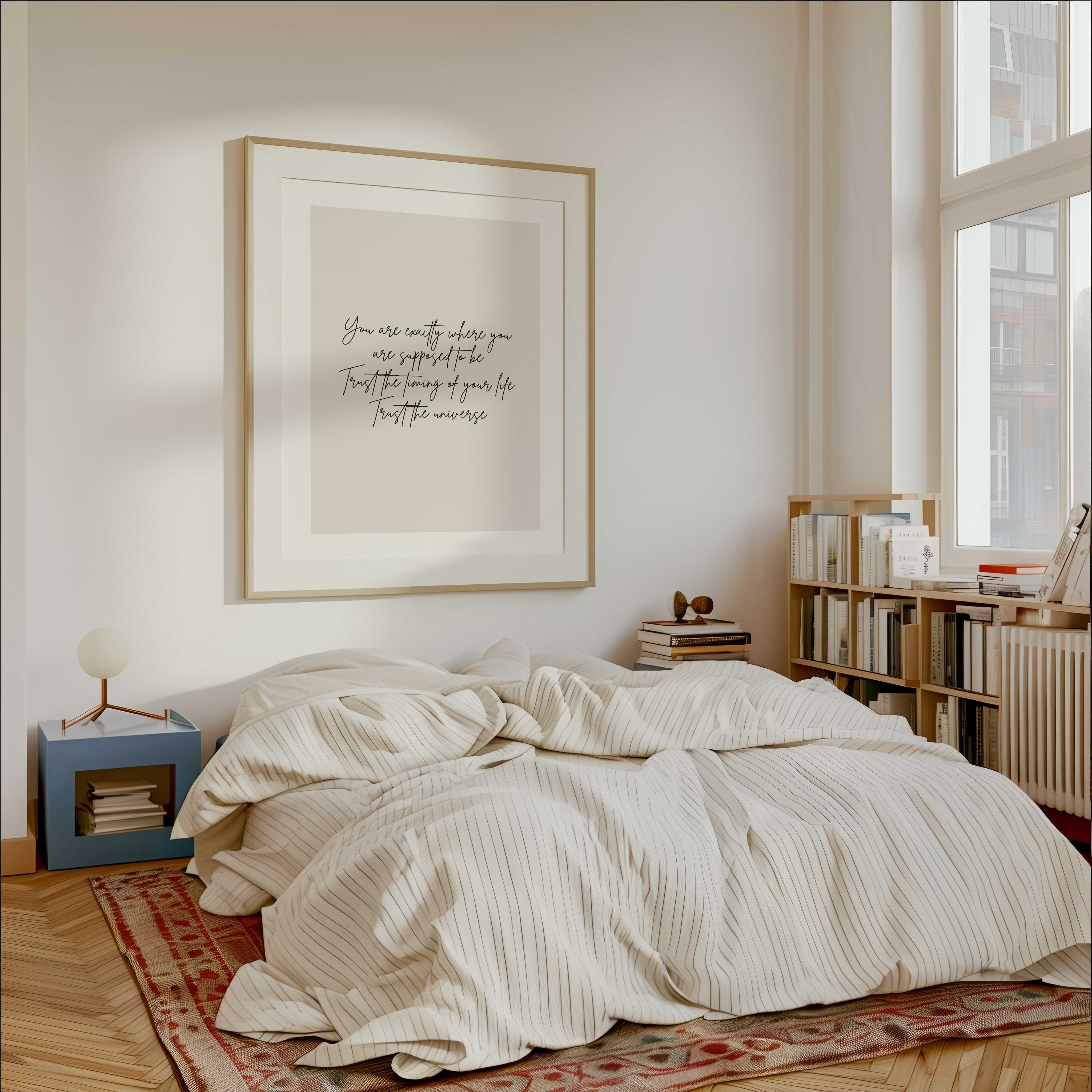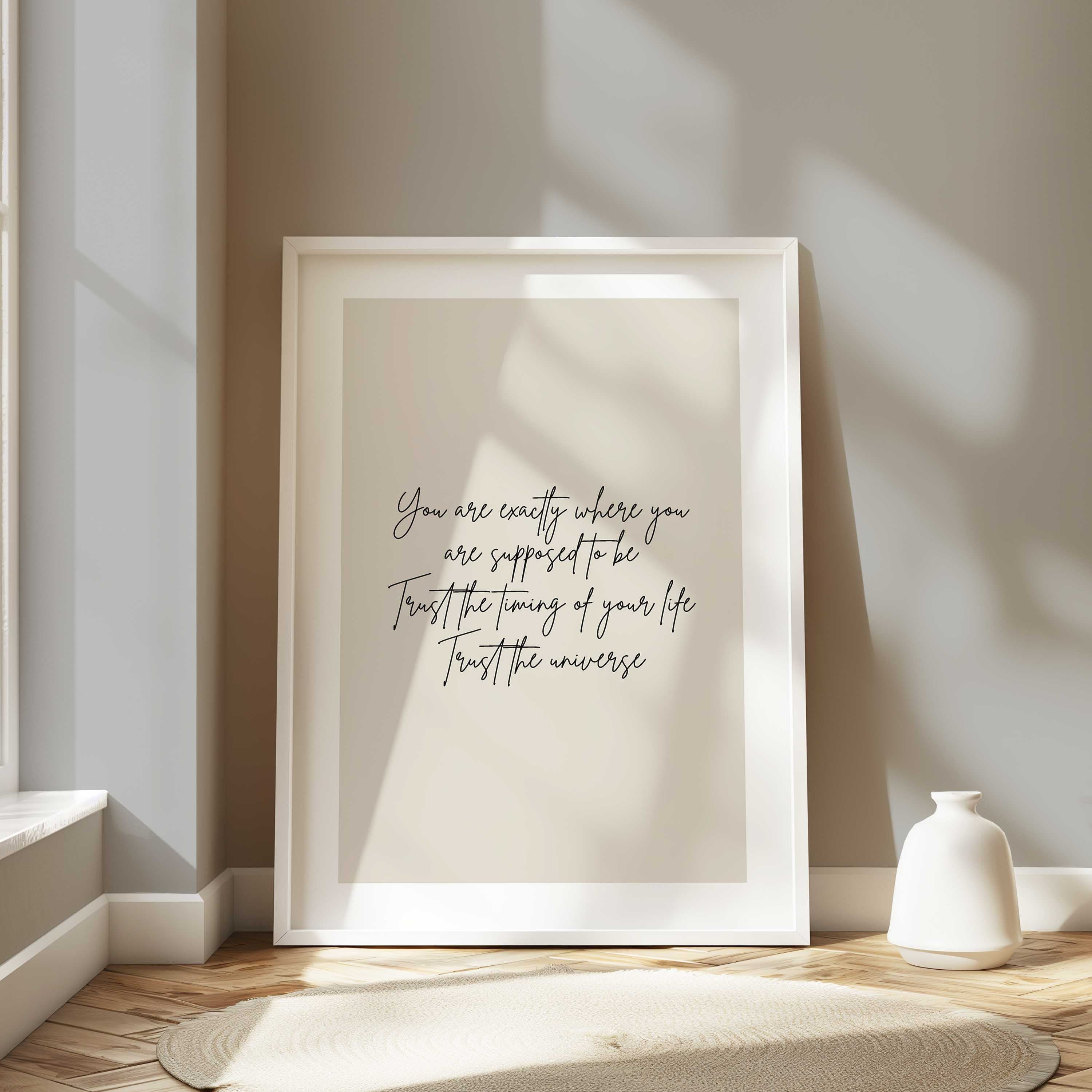 The Trust the Universe Print combines minimal design with meaningful words — a soft neutral backdrop and elegant handwritten script that makes a thoughtful addition to bedrooms, living spaces, or workspaces.