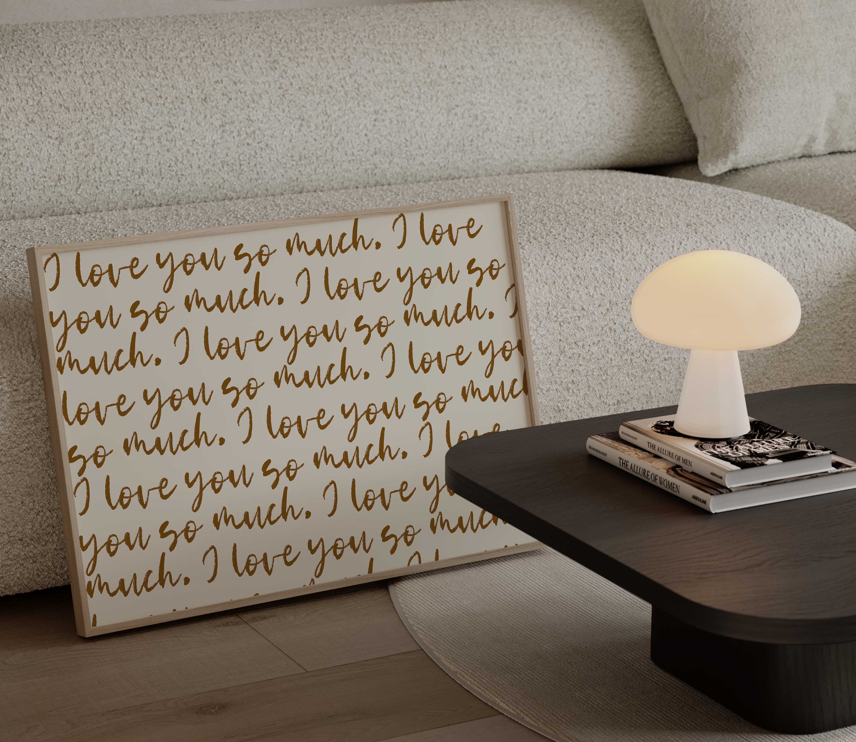 Whether displayed in an intimate bedroom setting, as a poignant focal point in your living space, or presented as a meaningful gift, this print transforms a simple sentiment into a gallery-worthy declaration.