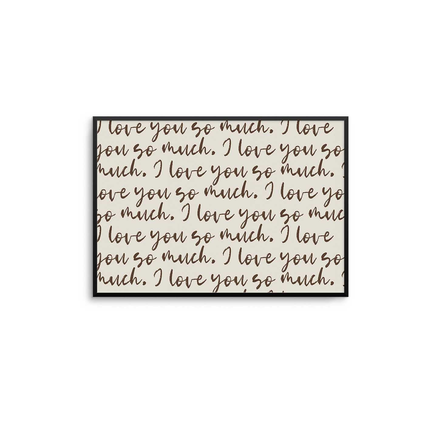 Celebrate love with refined elegance through this striking typographic composition. "I Love You So Much Script Print II" features flowing, expressive lettering that cascades across a serene neutral backdrop, creating a contemporary yet enduring visual statement. The interplay between bold script and understated landscape grounds the piece in modern sophistication while maintaining emotional resonance.