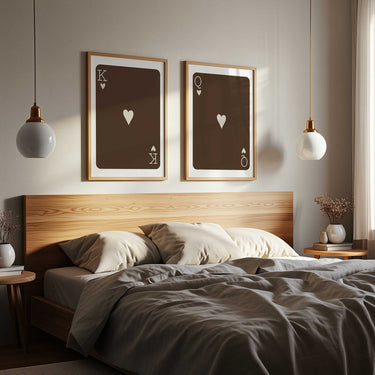 This minimalist playing card print set brings balance, symmetry, and subtle character to bedrooms and living spaces. Designed with clean lines and soft colour palettes, these pieces work beautifully above a bed, styled as a pair in a dining space, or as part of a curated gallery wall.
