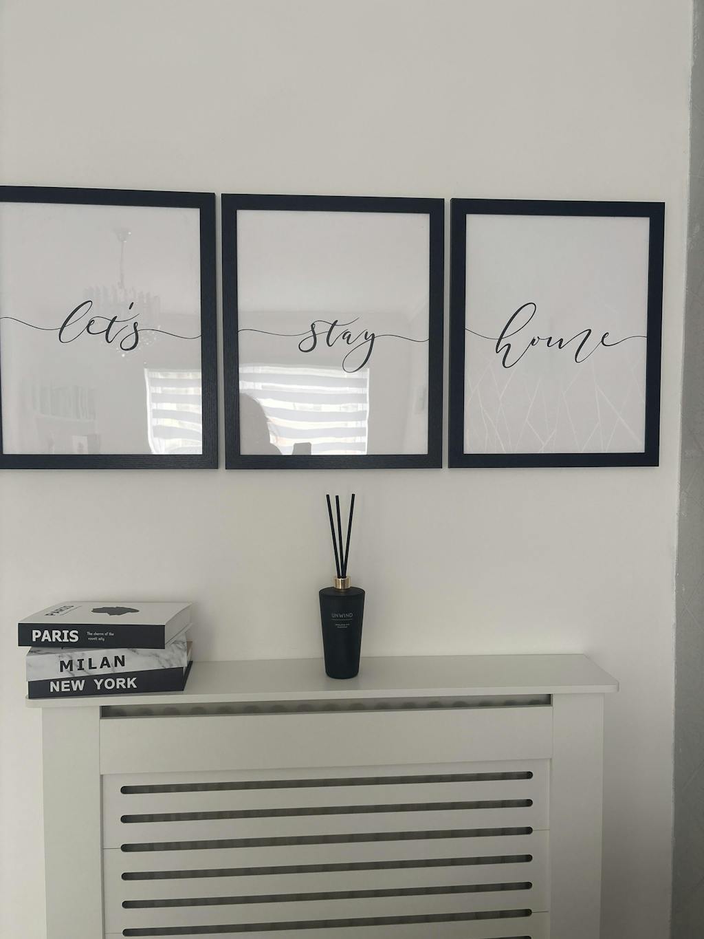 'Let's Stay Home' black or grey and white typography set of prints.