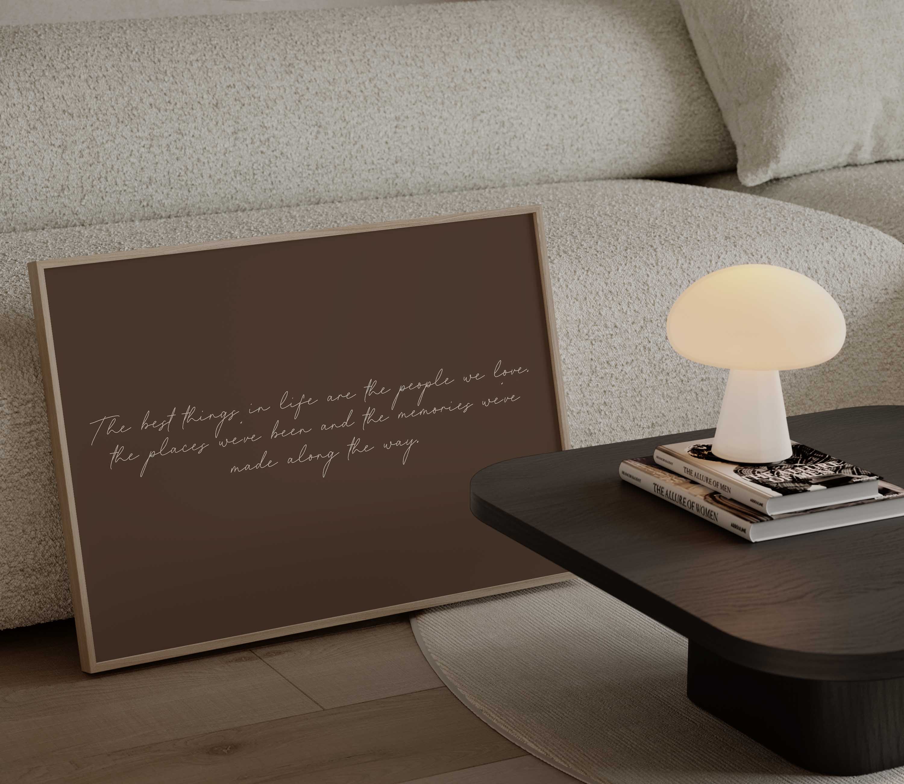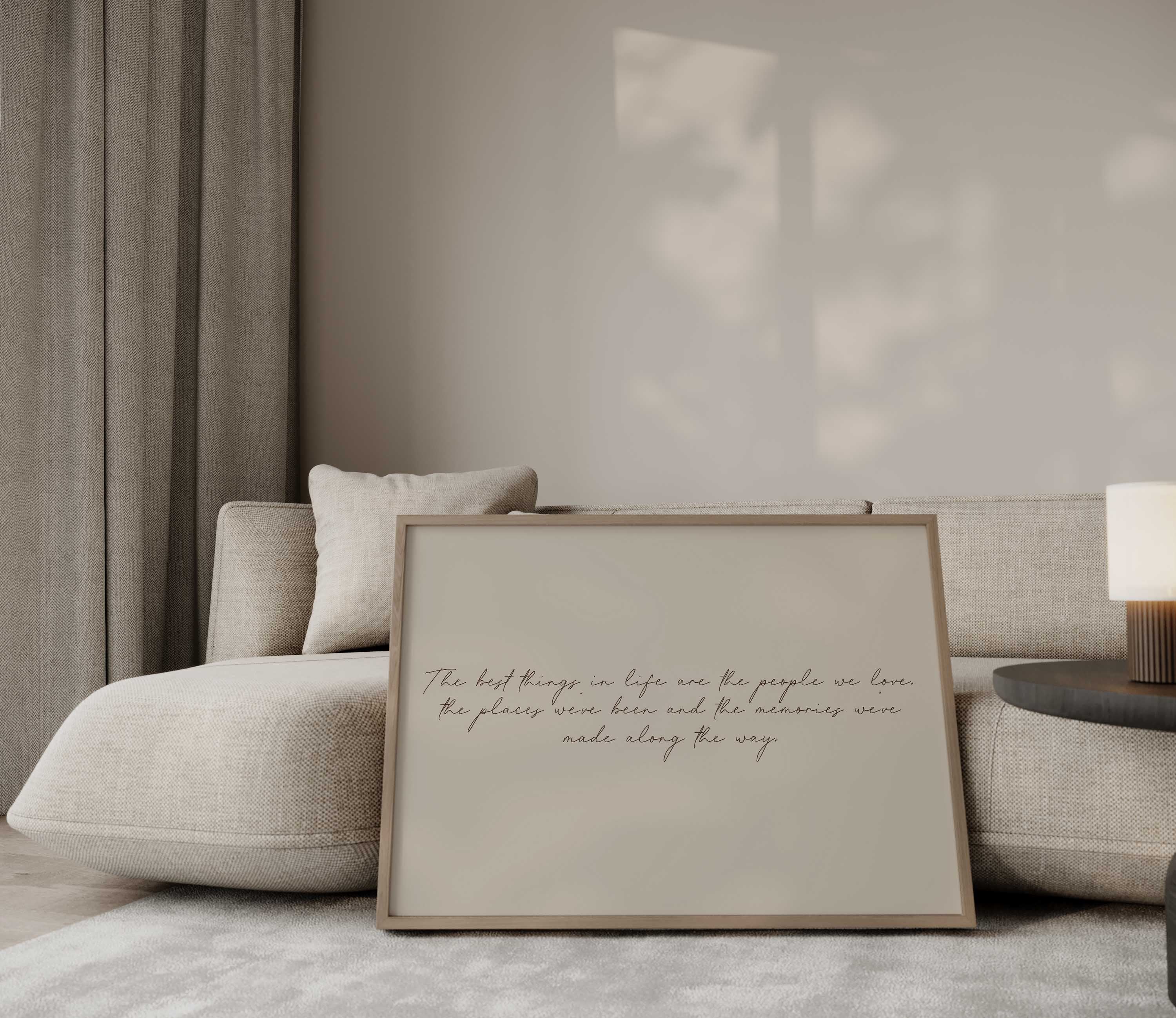 A softly written typography print that reflects on the moments that matter most - the people we love, the places we’ve been, and the memories made along the way. Designed to feel timeless and personal, this piece sits beautifully in living rooms, hallways and shared family spaces.