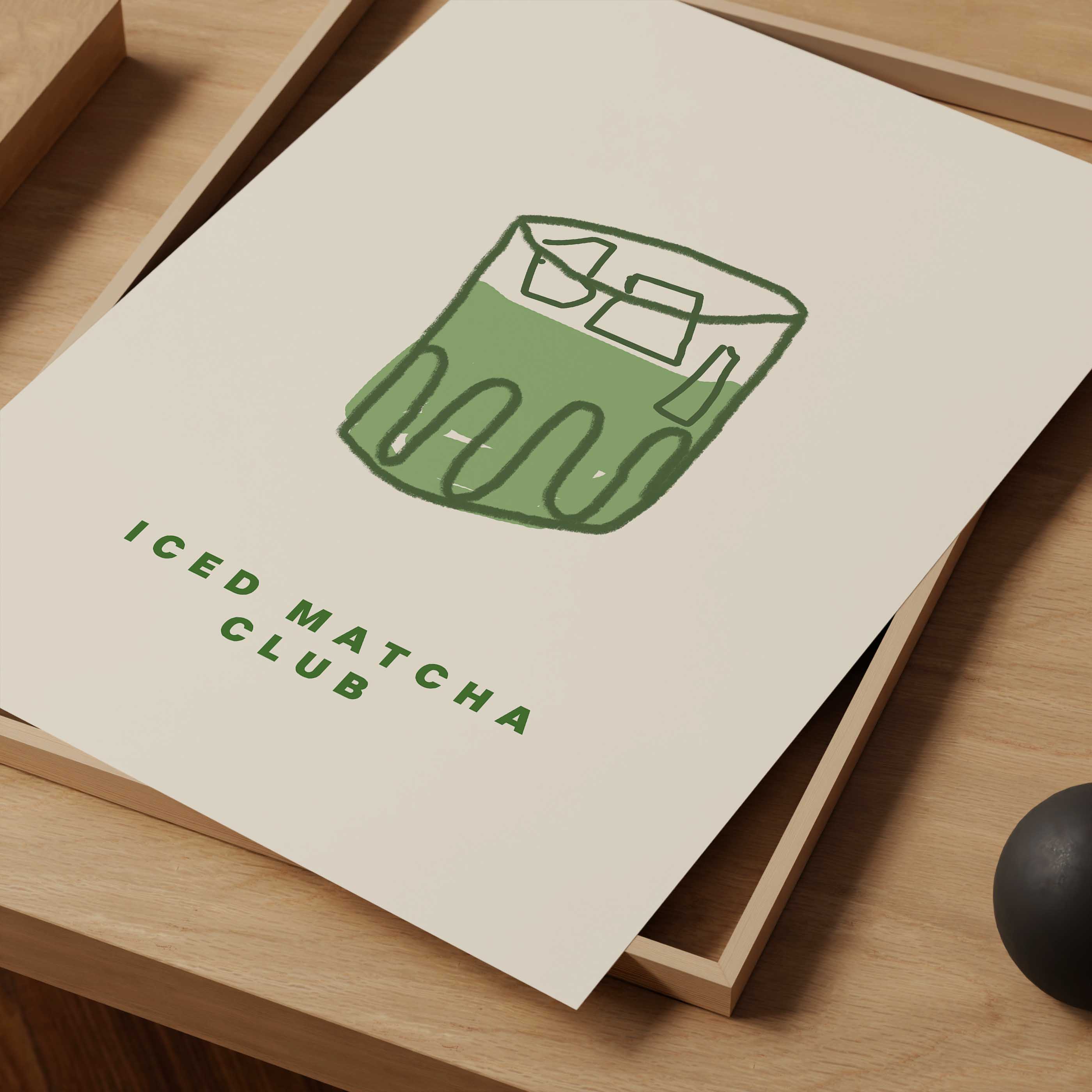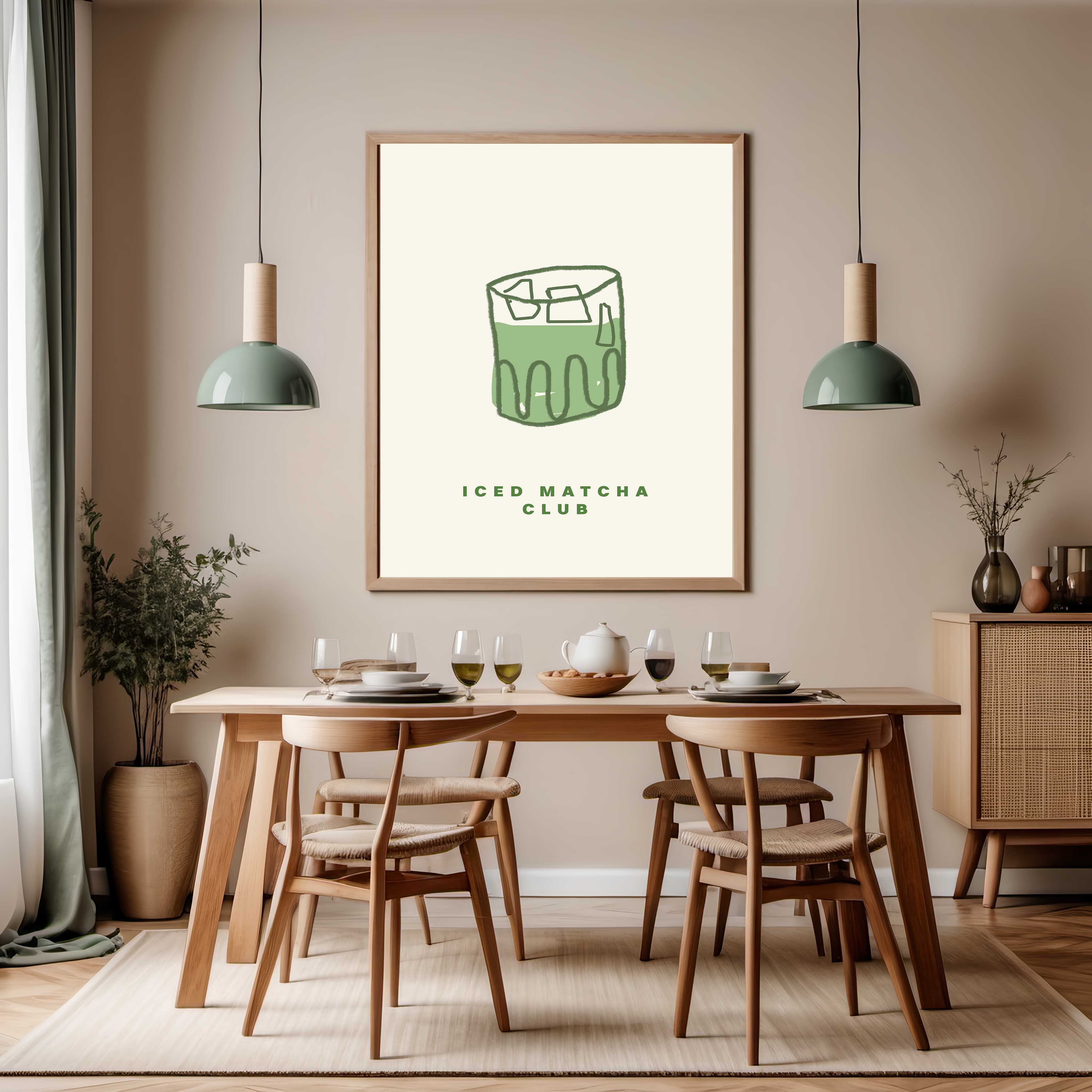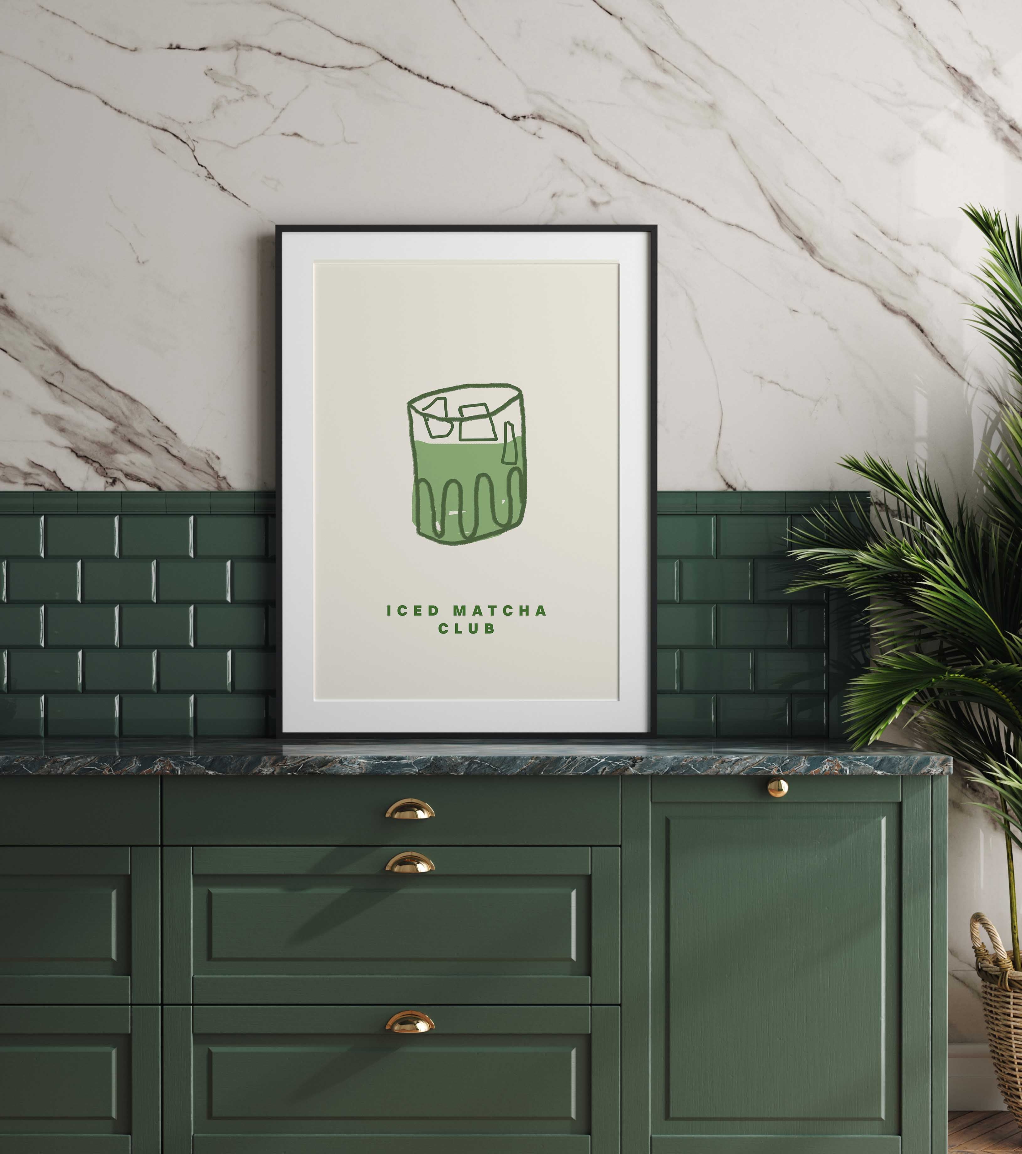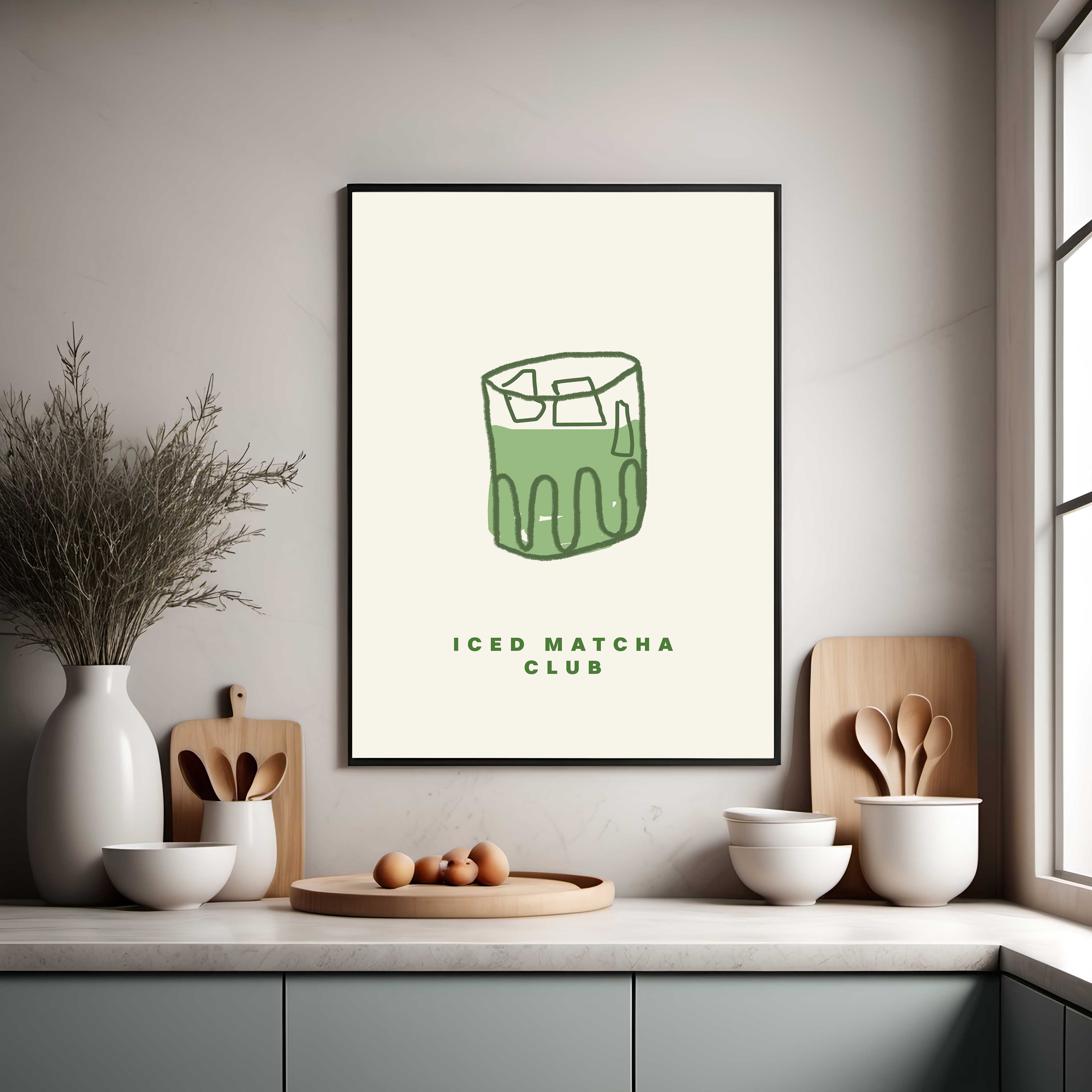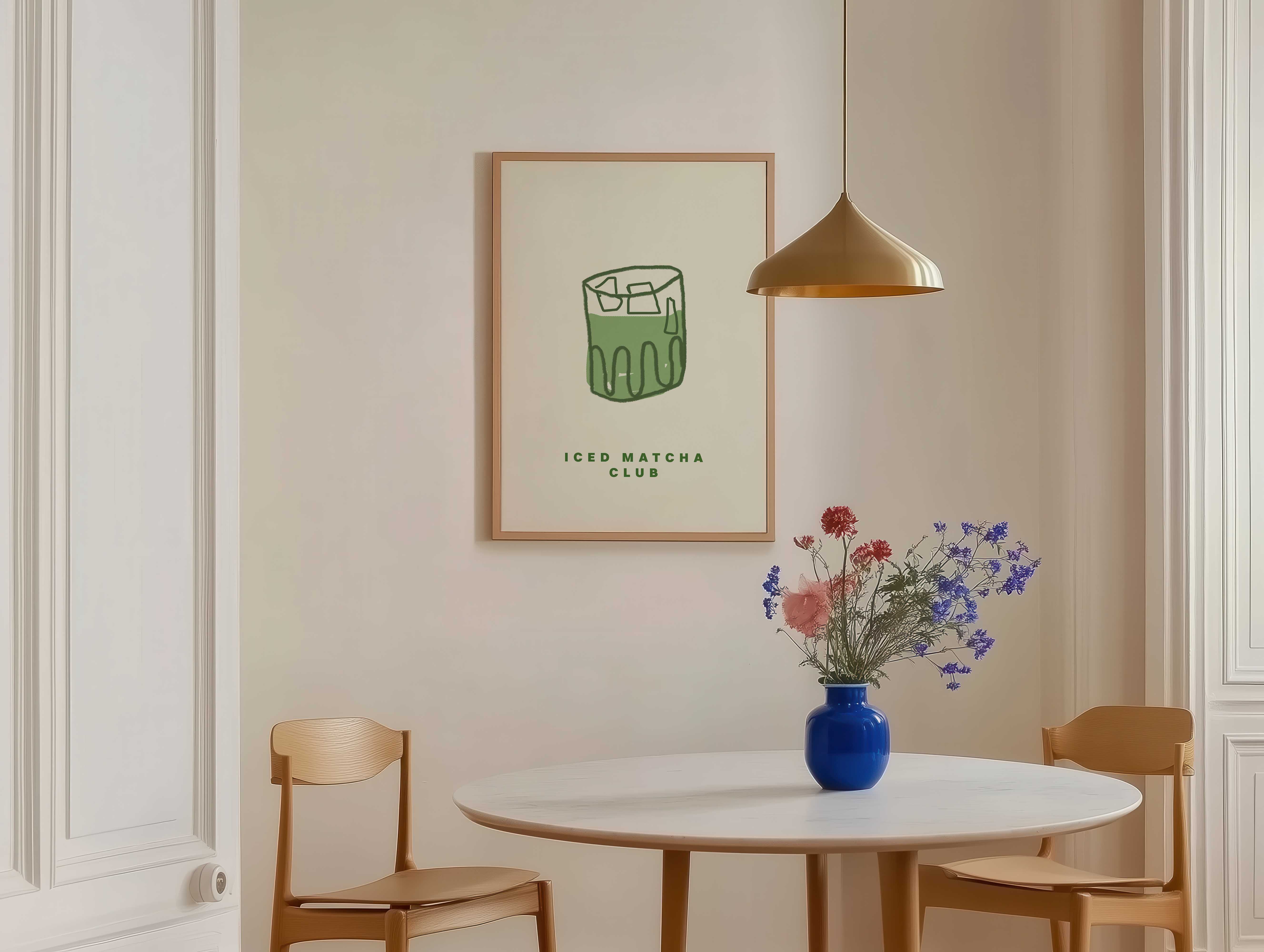 A fresh and playful print for matcha lovers and modern interiors alike. Featuring a minimal line illustration of an iced matcha glass in calming green tones, this design adds a touch of charm and personality to your kitchen, café nook, or breakfast space.