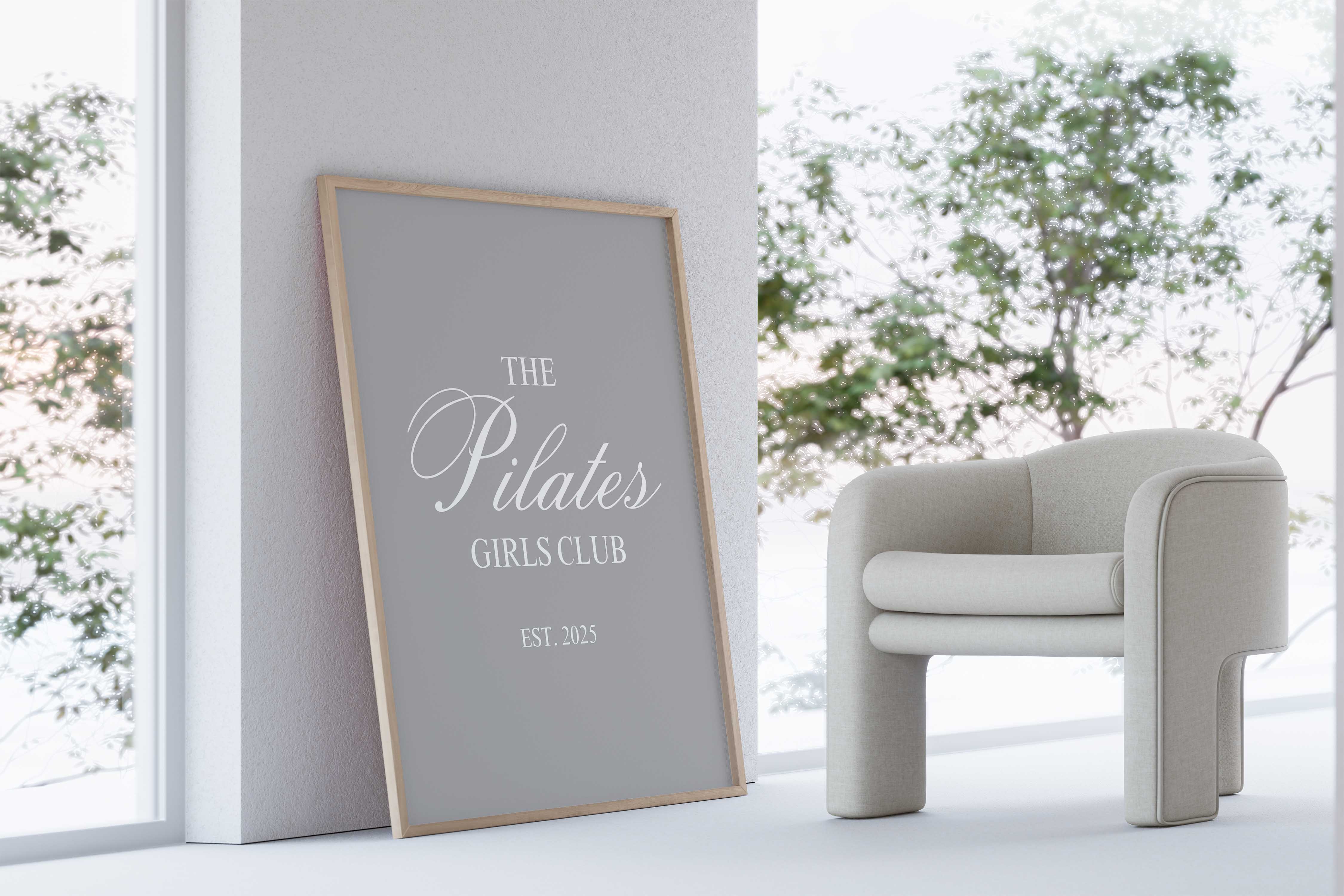 Bring a modern, stylish vibe to your walls with “The Pilates Girls Club” print — a chic piece celebrating movement, balance, and wellness. With its clean typography and neutral tones, this design makes a perfect addition to any home gym, studio, or bedroom space.